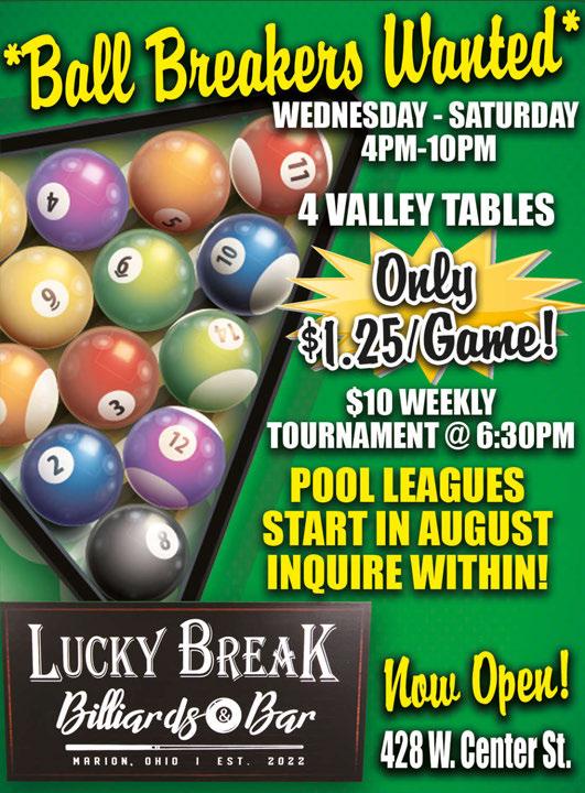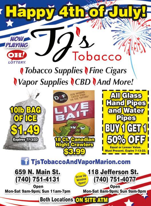 MARION June 2023 Shop locally. Save locally. Support LOCAL businesses! EQUAL EDUCATION OPPORTUNITY It is the policy of Tri-Rivers Career Center that educational programs and activities are provided without regard to race, color, national origin, gender, disability, or age. Adult Education Patient Care Technician Practical Nursing LPN to RN Saving Lives, Becoming Heroes CAREER CENTER Program details at tririvers.com 740-389-4682 Apply Today! *Any applicable parts or freon not included. • TOBACCO • VAPE • CBD & KRATOM • SNACKS • AND MORE! SOLD HERE ICE COLD BEER, WINE & BAR SERVICE AVAILABLE! FREE Lighter with any 3pk cigarette purchase 5AM TO 3AM EVERYDAY BEER SALES & BAR SERVICE UNTIL 2:30AM NOW