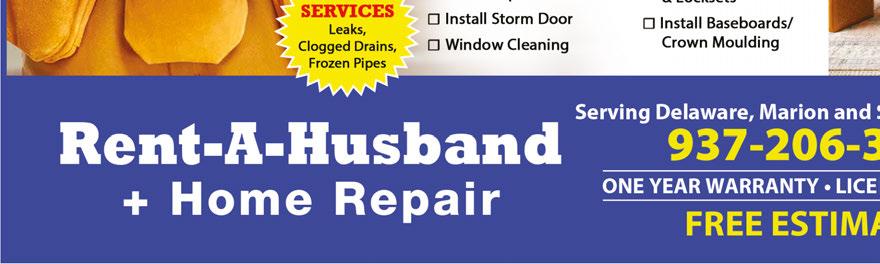 Expires 7/15/23 671 E. Center St. • MARION, OH 43302 740-914-4014 www.BohemianBesoms.com Tuesday through Friday: Noon to 7pm Saturday 10am to 7pm • We are a Locally Owned Family Business that does All Masonry Work • Specializing in Basement and Foundation Repair FREE ESTIMATES NOW BOOKING SPRING & SUMMER INSURED & BONDED SENIOR CITIZENS & FIRST RESPONDERS DISCOUNT! BEFORE AFTER 20% OFF WATERPROOFING With coupon. Expires 7/13/23