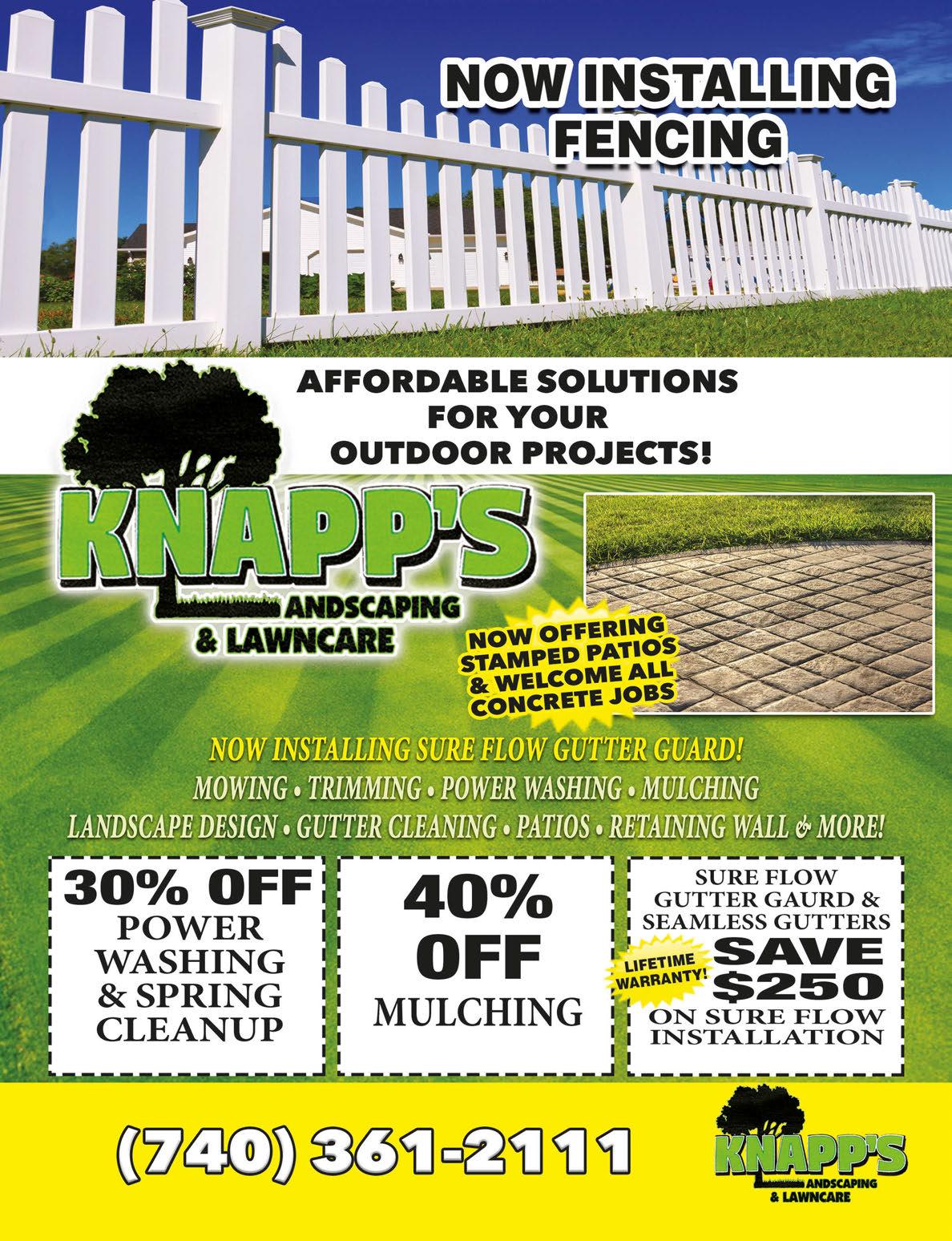 FREE MOWING! First & Last Mowing are Free with Agreement CALL FOR FULL DETAILS Good for new customers only. Offer Valid thru May 20th! We offer the following asphalt improvement services: • Sealing • Crack Filling • Striping • Neutralization of all oil and gas stains • Application of one or two coats of high-quality coal tar sealer with a fine sand aggregate mix • Residential is always brushed, NEVER SPRAYED for thick and protective coats RESIDENTIAL • COMMERCIAL LICENSED & INSURED 740-396-1110 jenkoasphalt@gmail.com Facebook @jenkoAsphaltMaintenance FREE ESTIMATES CALL TODAY! $50 OFF ASPHALT REPAIRS $250 OR MORE With Coupon. Expires 6/15/21