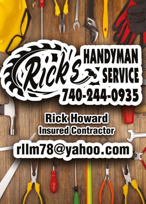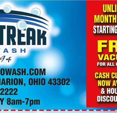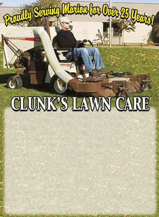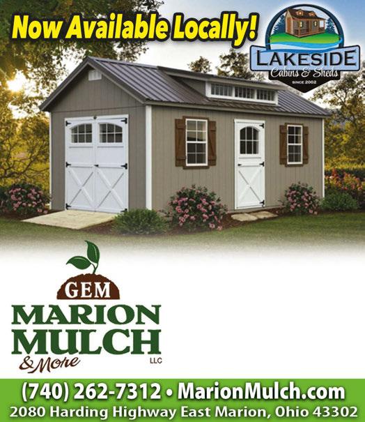 MARION PHONE: 740-375-4300 • 740-375-4301 1322 Mt. Vernon Ave. Marion, OH 43302 Sunday-Thursday 11am-10pm Friday-Saturday 11am-11pm WE DELIVER! NO CONTACT DELIVERY AVAILABLE UPON REQUEST 4054 LaRue Green Camp Road Marion, Ohio 43302 LAWN MOWING SHRUB TRIMMING LEAF REMOVAL • LAWN ROLLING GARDEN TILLING BED EDGING • SPRING CLEAN UP EMERGENCY MOW SERVICE FREE ESTIMATES Bob Clunk (740) 528-2551 Leo Buyer (740) 341-3017 WE ACCEPT ALL MAJOR CREDIT CARDS “Quality Matters” Phil Brugger, Owner 2035 Agosta-Meeker Rd New Bloomington, Ohio 43341 740-361-1495 phil@bruggerqualityconstruction.com Check Out Our Timber Tech Display at Brugger Quality Construction Proudly Installing Timber Tech Decks! NOW BOOKING FOR SUMMER! OUTDOOR LIVING SPACE VIRTUALLY MAINTENANCE FREE HELP WANTED