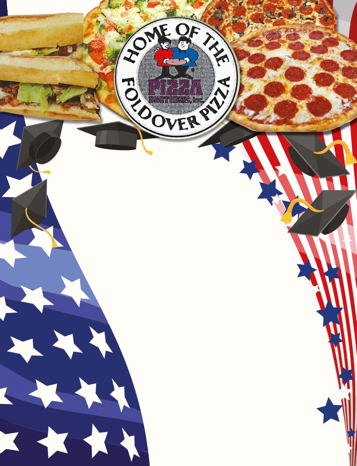 Hours: Monday-Thursday: 10:30am-1:30pm, 4:00pm-10:00pm • Friday & Saturday: 11:00am-11:00pm • Sunday: 4:00pm-10:00pm PIZZA BROTHERS 617 DELAWARE AVE. 387-2121 CARRYOUT OR DELIVERY 387-2121 617 Delaware Ave. Not valid with any other offer. PICK UP OR DELIVERY. Expires 6/15/21 Foldover Family Pack 17” Foldover, Large Chef Salad, Breadsticks & 2-Liter of 7UP Not valid with any other offer. PICK UP OR DELIVERY. Expires 6/15/21 387-2121 617 Delaware Ave. 17” 3 Topping Pizza $15.50 CODE # T0501 $28.50 (Premium Foldovers Available for Additional Charge) 17” 1 Topping Pizza & 2-Liter of 7UP $15 CODE # T0503 Not valid with any other offer. PICK UP OR DELIVERY. Expires 6/15/21 Not valid with any other offer. PICK UP OR DELIVERY. Expires 6/15/21 Not valid with any other offer. PICK UP OR DELIVERY. Expires 6/15/21 Not valid with any other offer. PICK UP OR DELIVERY. Expires 6/15/21 387-2121 617 Delaware Ave. CODE # T0502 13” Foldover & 2-Liter 7UP $15.50 (Premium Foldovers Available for Additional Charge) CODE # T0504 387-2121 617 Delaware Ave. 387-2121 617 Delaware Ave. 387-2121 617 Delaware Ave. 17” Foldover $2 OFF CODE # T0505 Captain Lonely Heart 10” 1 Topping Pizza, 1/2 Order Breadsticks, Small Chef’s Salad & 20oz Snapple CODE # T0506 $15 Salads & Sides Dressings for Salads Honey French, Golden Italian, Lite Italian, Blue Cheese, Buttermilk Ranch, Lite Ranch, Thousand Island, Sweet n' Sour.