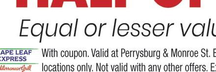 TO ADVERTISE, CALL 419.355.5477 TownMoneySaver.com December 2021 Shop locally. Save locally. PERRYSBURG Sweet Holiday Deals and more Unique Reasons to Shop at Small Businesses Holiday Recipes! LOOK INSIDE FOR GREAT LOCAL DEALS! Yala Kol, Home Comfort, Grape Leaf…and much more! Med e anean Grill GRAPE LEAF EXPRESS