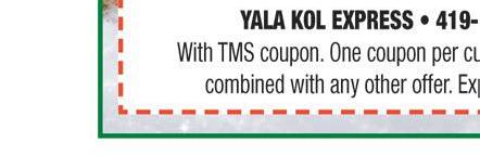 24 MONTHS Interest F ree FREE Aprilaire Whole House Humidifier w/ each R96V Furnace Installed With TMS coupon. Not valid with other offers. Expires 12/31/21 419-210-8713 734-587-3184 ARE YOU FEELIN’ IT ? 1 YEAR MONEY BACK GUARANTEE Inquire for details HEATING & COOLING Coupon must be presented at time of purchase. Does not include 80% furnaces. With TMS coupon. Not valid with other offers. Expires 12/31/21 $500 OFF Complete Furnace & AC System