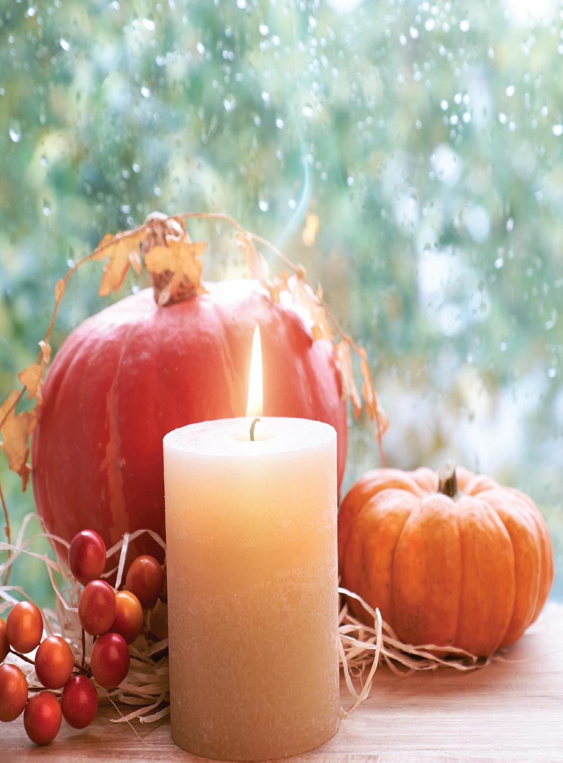 Create simple centerpieces. Use seasonal sights for your centerpieces or place settings. ese can include small squashes, gourds, citrus fruits, nuts, or acorns. A hollowed-out pumpkin lled with fresh owers also can be eye-catching.