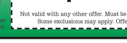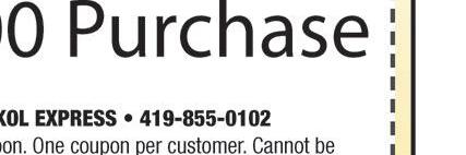 Not valid with any other o ers. Exp. 11/30/21 325 175 NowOnly! Save $150 * $60 Charge per hour for above average soiled vehicles. • • • • • Not valid with any other o ers. Exp. 11/30/21 225 125 SUMMER SANITIZE DETAIL NowOnly! Save $100 * $60 Charge per hour for above average soiled vehicles. SUMMER SANITIZE DETAIL ALL Vehicles Disinfected! ALL Vehicles Disinfected! Works Plus 8 Works Plus 8 Exp. 10/31/21 Exp. 10/31/21 Exp. 10/31/21 Exp. 10/31/21 Visit Our 5 Convenient Towel Dry Locations GO UNLIMITED! Maumee 419• 893• 1406 201 Illinois Av A e. Detail Center Full Service 1010 W. Alexis 419• 476• 6517 Exterior Washes 6859 Airport 419• 867• 1668 Lube Shop Exterior Washes 5440 W. Central 419. 536• 7540 Exterior Washes 3211 Woodville Rd. 419• 691• 3024 Exterior Washes For More Details, Visit expressocarwash.com Starting at under $20 /month! • Unlimited Washes • Use at all 5 NW Ohio Sites • Towel Dried! FREE Vacuums at Exterior Wash Locations! WE USE •1 STEP DISINFECTANT •EPA REGISTERED GERMICIDAL SPRAY Free Washes • Benefits for Full-time $13-$15 Hourly 5 AREAS for $135 3 areas .... $115 4 areas .... $125 5 areas .... $135 6 areas .... $145 Serving NW Ohio & SE Michigan 419-729-9966 Min. charge $100. Plus tax. Residential use only. L-shaped areas or areas exceeding 250 sq. ft. are considered 2 areas. Cannot be used with other discounts. Coupon expires 10/31/21 Couch ...... $70 Loveseat .. $60 Chair ........ $45 Plus tax. Minimum charge $100. Cannot be used with other discounts. Coupon expires 10/31/21