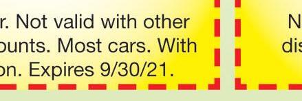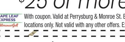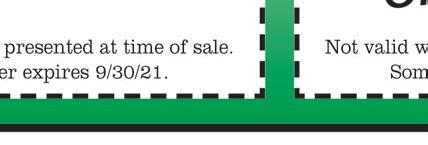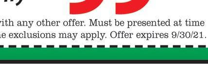 MEXICAN GRILL & BAR Patio Open! 5demayotoledo.com Call for Live Music Informaton at your closest Cinco de Mayo location Any purchase of $40 or more With TMS coupon. Dine in only. Not valid with any other offers. Exp. 9/30//21 $5 OFF LUNCH SPECIAL $599 Any Lunch With TMS coupon. Dine in only. One coupon per person. Not valid with any other offers. Exp. 9/30/21 Lunch Menu Only. With TMS coupon. Dine in only. One coupon per person. Not valid with any other offers. Offer good 9/6/21 only. MONDAY SEPTEMBER 6TH 20% OFF ENTIRE BILL THURSDAY SEPTEMBER 16TH LABOR DAY SPECIAL MEXICAN INDEPENDENCE DAY With TMS coupon. Dine in only. One coupon per person. Not valid with any other offers. Offer good 9/16/21 only. 20% OFF ENTIRE BILL 1/2 OFF Offer good at Holland and Rossford locations only. EVERYDAY 3pm-5:30pm Drinks & Appetizers Happy Hour MONDAY Special $599 Dine in only. Cannot be combined with other offers. No coupon needed. Any Lunch Not valid with any other o ers. Exp. 10/31/21 325 175 NowOnly! Save $150 * $60 Charge per hour for above average soiled vehicles. • • • • • Not valid with any other o ers. Exp. 10/31/21 225 125 SUMMER SANITIZE DETAIL NowOnly! Save $100 * $60 Charge per hour for above average soiled vehicles. SUMMER SANITIZE DETAIL ALL Vehicles Disinfected! ALL Vehicles Disinfected! Works Plus 8 Works Plus 8 Exp. 9/30/21 Exp. 9/30/21 Exp. 9/30/21 Exp. 9/30/21 Visit Our 5 Convenient Towel Dry Locations GO UNLIMITED! Maumee 419• 893• 1406 201 Illinois Ave. Detail Center Full Service 1010 W. Alexis 419• 476• 6517 Exterior Washes 6859 Airport 419• 867• 1668 Lube Shop Exterior Washes 5440 W. Central 419. 536• 7540 Exterior Washes 3211 Woodville Rd. 419• 691• 3024 Exterior Washes For More Details, Visit expressocarwash.com Starting at under $20 /month! • Unlimited Washes • Use at all 5 NW Ohio Sites • Towel Dried! FREE Vacuums at Exterior Wash Locations! WE USE •1 STEP DISINFECTANT •EPA REGISTERED GERMICIDAL SPRAY