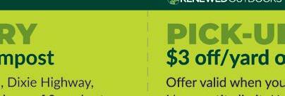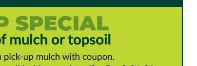 1951 Tremainsville Toledo, OH (some exclusions apply) Toledo Landscape Supply T L TWO LOCATIONS 201 E. Andrus Northwood, OH NOW OPEN 419-973-0829 • www.toledolandscapesupply.com is Sod & Lawn Month! September Premium Topsoil $35/yd including Premium Lawn Seed Sun, Sun & Shade, Athletic Blend, Shady Blend Available 3#, 7#, 20# 10% OFF 9 sq. ft Rolls reg. $9/roll $6/roll Fresh Kentucky Bluegrass Sod September begins the best time of the season to install a new lawn, over-seed, & patch! Andersons Brand Seed Starter, Mighty Straw, Seed Starter Mulch 10% OFF Lawn Seeding Products Andersons Lawn Food & Weed & Feed Fertilizer Get ready for fall with a DIY Fire Pit 20% OFF Fire Pit Kits Black Natural................. 2.50/bag Brown Natural ............... $2.50/bag Red Natural ................... $2.50/bag Black Velvet................... $3.00/bag Brown Velvet ................. $3.00/bag Organic Velvet............... $2.25/bag Sale Prices WhileLast!Supplies mulch Mention ad for sale prices!