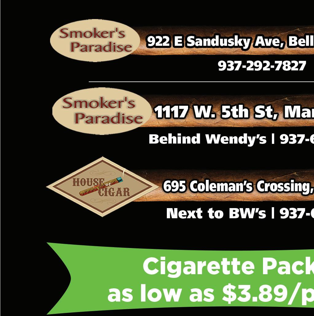 PIZZA & SUBS CHILI CHEESE FRIES CALZONES WINGS New! PIZZA • WINGS • STROMBOLI CALZONES • SUBS & SALADS 408 Main St. • BELLEFONTAINE MONDAY SPECIAL: BUY ONE REG. PRICED PIZZA GET 2ND REAL CHEAP! TUESDAY SPECIAL: ANY LARGE SUB OR 12 " PIZZA WEDNESDAY SPECIAL: 14" PIZZA THURSDAY SPECIAL: 10" SPECIALTY PIZZA 2nd 7” Pizza - $1.00 2nd 10” Pizza - $2.00 2nd 12” Pizza - $3.00 2nd 14” Pizza - $4.00 2nd 16” Pizza - $5.00 2nd 18” Pizza - $6.00 up to 3 toppings - only $5.99 one topping - only $6.00 $5.99 Must present coupon. Not valid with any other offer. Expires 11/15/21 Must present coupon. Not valid with any other offer. Expires 11/15/21 CALL TO ORDER NOW! 937.592.1020 CALL TO ORDER NOW! 937.592.1020 CALL TO ORDER NOW! 937.592.1020 CALL TO ORDER NOW! 937.592.1020 Must present coupon. Not valid with any other offer. Expires 11/15/21 Must present coupon. Not valid with any other offer. Expires 11/15/21 Thurs-Fri: 10:30AM-9:00AM • Sat-Wed: 3:30PM-9:00PM • Sun: 3:30PM-8:00 PM DELIVERY & CARRYOUT CALL 937.592.1020 TO ORDER NOW! Download our App Today! NOW SERVING Pasta • Spaghetti • Fettuccine Ravioli (beef, cheese or portabella) You don’t have to be WEALTHY to get good financial planning advice At 4Sight Insurance & Financial Services we offer services to help protect your family. Call Rick or Bart today & we can begin helping you tomorrow! 1653 US 68 North 937.595.5002 We have a New location just North of Hwy 33 on US 68 We help with: • Retirement/Pension Options • Wealth Transfer • Insurance & estate planning • Saving & investing help • Social security strategizing • 401k planning