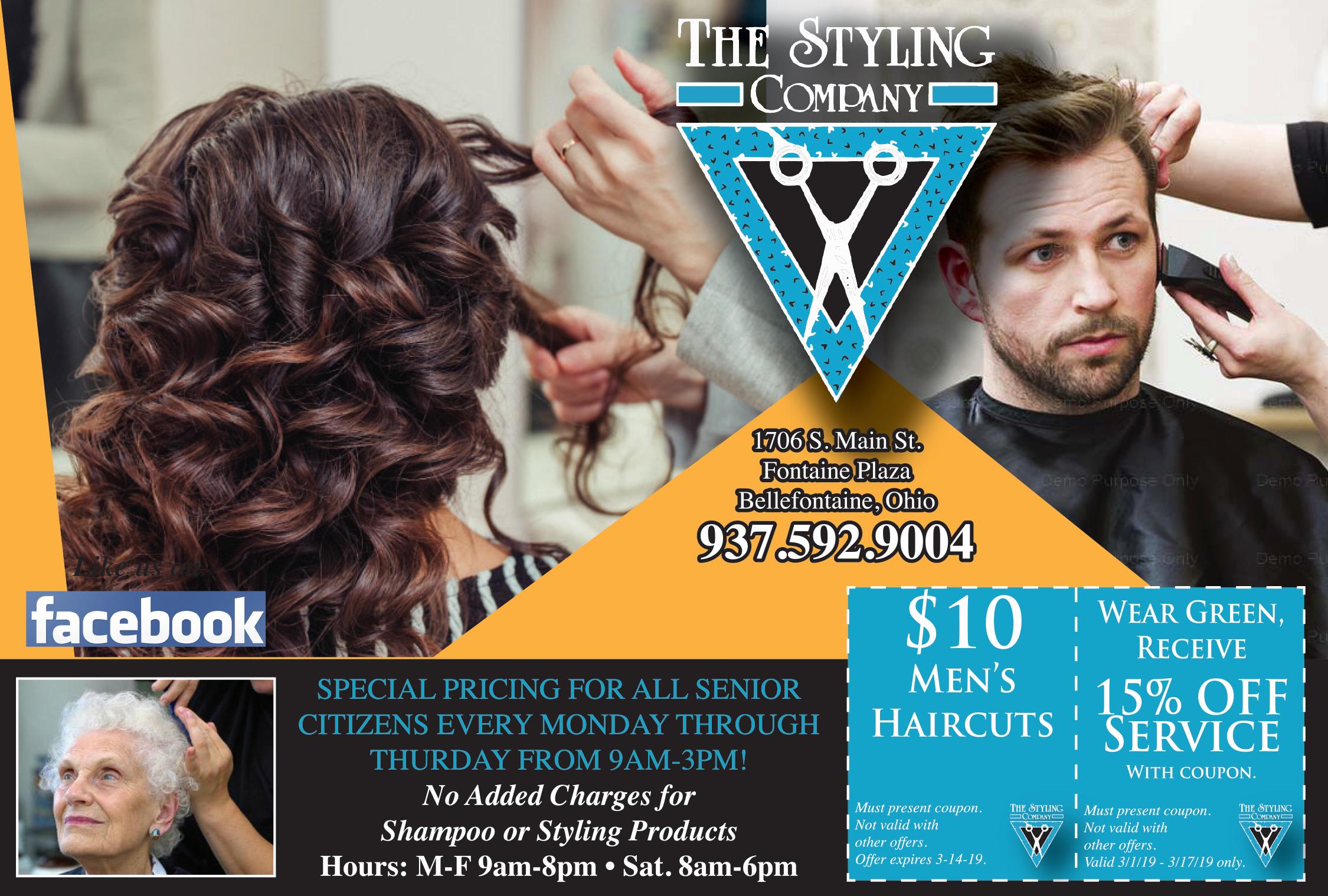 Special Pricing For all Senior Citizens No added Charges for Shampoo or Styling Products Hours: Mon - Fri 9am-7pm • Sat 8am - 6pm Come in today to get your Fall Colors $10 Men’s Cut on Wednesdays FREE Malibu Treatment with color purchase of $50 or more! Valid Mon-Thurs only. Must present coupon. Not valid with other o ers. Expires 11/15/21 Valid Mon-Thurs only. Must present coupon. Not valid with other o ers. Expires 11/15/21 Valid Mon-Thurs only. Must present coupon. Not valid with other o ers. Expires 11/15/21 10% OFF any retail product of your choice Bellefontaine, OH 1706 S. Main St. • Fontaine Plaza Call us Today! 937.592.9004