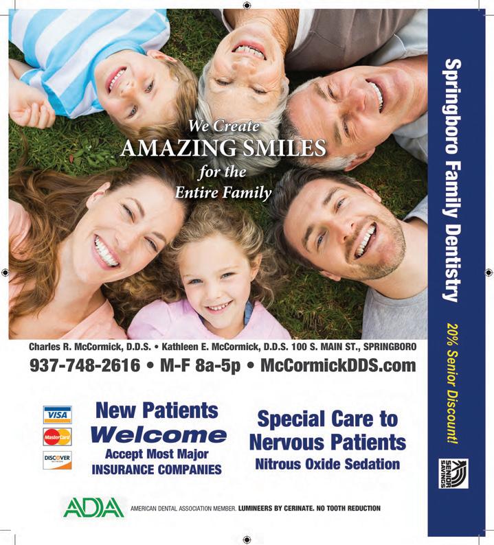 TRAMPOLINES 3 FOAM PITS NINJA COURSE DODGE BALL TODDLER AREA PARTY ROOMS GET OUT. GET ACTIVE. GET AIR. CLUB AIR FRI & SAT 8PM – 10PM STARTING AT $199 $50 OFF YOUR NEXT PARTY WHEN YOU BOOK A PARTY WITH 10 OR MORE JUMPERS With coupon. Not valid with other o ers. Not valid on holidays and school holidays. Limited to ONE per household. One time use. Valid for one party only, please. Expires 3/31/2022 $5 OFF 2 HOUR JUMP PASS (LIMIT 4 GUESTS PER COUPON) With coupon. Not valid with other o ers. Not valid on holidays and school holidays. Limited to ONE per household. One time use. Valid for one person only, please. Expires 3/31/2022 FREE HOUR BUY 1 HOUR, GET 2ND HOUR FREE (SAME PERSON/SAME DAY) With coupon. Not valid with other o ers. Not valid on holidays and school holidays. Limited to ONE per household. One time use. Valid for one person only, please. Expires 3/31/22 FREE HOUR BUY 1 HOUR, GET 2ND HOUR FREE (SAME PERSON/SAME DAY) With coupon. Not valid with other o ers. Not valid on holidays and school holidays. Limited to ONE per household. One time use. Valid for one person only, please. Expires 3/31/22 8341 Springboro Pike • Miamisburg • 937-202-4578 Get coupons/deals online at... GetAirMiamisburg.com 249A WEST CENTRAL AVE. IN SPRINGBORO 937-790-1517 · Springborocoin@gmail.com PAYING HIGHEST PRICE IN TOWN FOR: Gold · Silver · Diamonds · Coin · Costume Jewelry Watch Battery Replacement (Limit one per customer) Jewelry Cleaning & Inspection $8 FREE Present this coupon at time of purchase. Not valid with any other offer. TMS coupon only. Expires 3/31/22 Present this coupon at time of purchase. Not valid with any other offer. TMS coupon only. Expires 3/31/22 CELEBRATING 34 YEARS OF SERVICE Restore your decorative concrete for a fraction of the cost to replace. Chemical Free Stripping Landscape Friendly Custom Coloring Available Professional Workmanship Premium Grade Decorative Sealer CALL FOR A FREE ESTIMATE! miamivalleyconcrete.com Dayton: 937-237-5214 Cincinnati: 513-905-1234 Columbus: 614-983-1183 CELEBRATING Restore decorative concrete fraction cost to