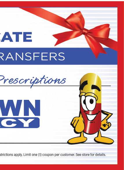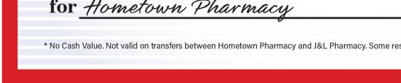 GEORGETOWN March 2022 Shop locally. Save locally. 1036 LEXINGTON RD GEORGETOWN, KY DRIVE THRU OPEN 24 HOURS MEDIUM BREAKFAST TOASTER COMBO BUY A 6” Coney GET ONE Of equal or lesser value. Requires reg. Price purchase. Add-ons cost extra. One coupon per visit. Not good with any other offers. Valid only at Georgetown, KY Sonic location. No cash value. EXPIRES 3/31/22 ROUTE 44 FREE FOOTLONG 1/4lb CONEY Valid on single patty burger only. Of equal or lesser value. Requires reg. Price purchase. Add-ons cost extra. One coupon per visit. Not good with any other offers. Valid only at Georgetown, KY Sonic location. No cash value. EXPIRES 3/31/22 FREE SONIC® CHEESEBURGER WACKY PACK KIDS MEAL Small Mozzarella Sticks BOGO Chicken Sandwich CRISPY OR GRILLED BOGO Pretzel Twist Of equal or lesser value. Requires reg. Price purchase. Add-ins cost extra. One coupon per visit. Not good with any other offers. Valid only at Georgetown, KY Sonic location. No cash value. EXPIRES 3/31/22 Of equal or lesser value. Requires reg. Price purchase. Add-ins cost extra. One coupon per visit. Not good with any other offers. Valid only at Georgetown, KY Sonic location. No cash value. EXPIRES 3/31/22 Of equal or lesser value. Requires reg. Price purchase. Add-ins cost extra. One coupon per visit. Not good with any other offers. Valid only at Georgetown, KY Sonic location. No cash value. EXPIRES 3/31/22 BOGO Medium Slush $1.99 + Tax with purchase of a SONIC® Cheeseburger 99¢ + Tax BIG SOFT DRINK OR TEA Of equal or lesser value. Requires reg. Price purchase. Add-ons cost extra. One coupon per visit. Not good with any other offers. Valid only at Georgetown, KY Sonic location. No cash value. EXPIRES 3/31/22 Of equal or lesser value. Requires reg. Price purchase. Add-ons cost extra. One coupon per visit. Not good with any other offers. Valid only at Georgetown, KY Sonic location. No cash value. EXPIRES 3/31/22 Of equal or lesser value. Requires reg. Price purchase. Add-ons cost extra. One coupon per visit. Not good with any other offers. Valid only at Georgetown, KY Sonic location. No cash value. EXPIRES 3/31/22 Of equal or lesser value. Requires reg. Price purchase. Add-ons cost extra. One coupon per visit. Not good with any other offers. Valid only at Georgetown, KY Sonic location. No cash value. EXPIRES 3/31/22 Of equal or lesser value. Requires reg. Price purchase. Add-ons cost extra. One coupon per visit. Not good with any other offers. Valid only at Georgetown, KY Sonic location. No cash value. EXPIRES 3/31/22 $2.99 with purchase of a Footlong Quarter Pound Coney $1.99 Plus Tax FREE WE SELL 10 LB. BAGS OF ICE! * No cash value. Not valid on transfers between Hometown Pharmacy and J&L Pharmacy. Some restrictions apply. Limit one (1) coupon per customer. See store for details. LOW PRICE GUARANTEE! WE MATCH ALL DISCOUNT PRESCRIPTION CARD PRICES!* PAY 1X MONTH CHARGE ACCOUNTS* Some restrictions apply - see store for details. the Georgetown Location! Blister, Bubble & Multi-Dose Packs We are in the 2022 Preferred Pharmacy Network! • Scripts filled in 10 minutes or less • Fast Drive Thru • Compounding • Daily Vaccines • Automatic Refills Some restrictions apply. See store for details. FREE LOCAL DELIVERY Medicare Part D Participants: SAVE MORE ON COPAYS! * Some restrictions apply. See store for details. J&L Pharmacy & Home Medical (Georgetown) 705 S. Broadway St. • Georgetown, KY Pharmacy: (502) 863-9823 Home Medical: (502) 863-6774 Hometown Pharmacy (Georgetown) 1502 Oxford Dr. Suite 150 • Georgetown, KY (502) 863-3784 Hometown Pharmacy (Frankfort West) 1140 US Highway 127 S Frankfort, KY (502) 699-2440 Hometown Pharmacy (Lawrenceburg) 1185 Glensboro Rd • Suite 5, Lawrenceburg, KY (502) 517 - 0888 Hometown Pharmacy (Frankfort East) 190 Versailles Rd Frankfort, KY (502) 699-2690 Hometown Pharmacy (Lexington) 2860 Richmond Rd., Ste 190 Lexington, KY (859) 407-4135 Hometown Pharmacy (Winchester) 200 Codella Dr., Ste C, Winchester, KY (859) 759-2102 with Medicaid and some Commercial Insurances FREE COVID TEST (or $19.99 cash price) To advertise, call 859.391.4113
