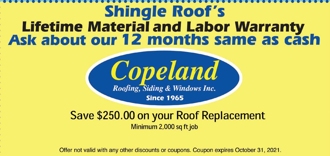 The K-Guard gutter design is based on the principle of liquid adhesion. such as the unique K-Guard hood. water to fall-off into the gutter. Protective baffle controls backsplash. Curved hood deflects leaves, twigs, pinestraw, etc., while allowing rain water to go into the gutter. Non-corrosive internal hangers. Narrow opening impedes debris entry. Leaves, acorns, twigs, pinestraw and other organic debris are easily deflected away. GUARD Lifetime NO Clog Warranty (937) 426-2956 “No More Gutter Cleaning ” w/coupon on KGuard Gutter System only 10 % OFF www.copelandroofing.com 10 % OFF No Clog Warranty 10% OFF NOT VALID WITH OTHER DISCOUNTS Minimum purchase $1,500.00 GU ARD Exclusive Gutter System Since 1965 w/coupon on KGuard Gutter System only 43 South Main St. • CENTERVILLE • 937.433.9598 • Tue-Fri 10a-5:30p Sat 10a-4p eFairExchangeJewelry.com New and Vintage Jewelry Jewelry and Watch Repair Appraisals BUYING GOLD, SILVER, SILVER PLATE, JEWELRY, COINS & DIAMONDS 50% OFF on all silver rings