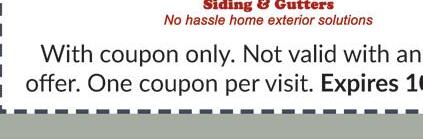www.emeraldhousecleaning.com 513-850-0179 FREE Estimates • Satisfaction Guaranteed • Insured & Professionally Trained Staff NOW HIRING! $25 off Cannot be combined with any other offer. Coupon not available on move-in and move-out cleans. Valid with TMS coupon only. Expires 10/31/21. FIRST cleanIng SPecIal! 43 South Main St. • CENTERVILLE • 937.433.9598 • Tue-Fri 10a-5:30p Sat 10a-4p