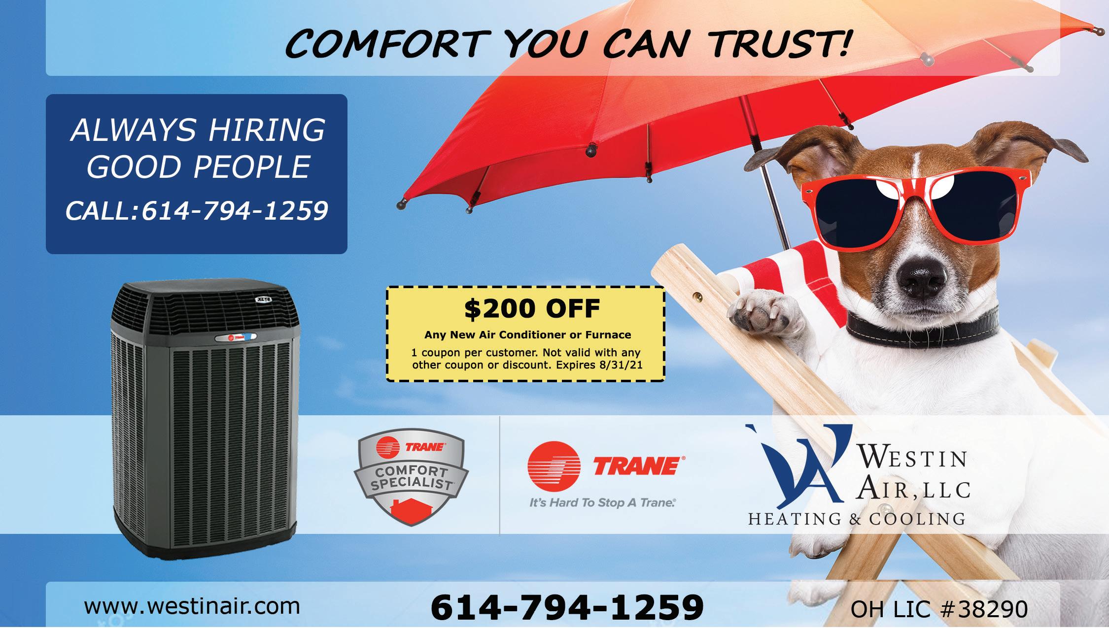 website: www.westervilleair.com 614 - 957 - 7785 CERTIFIED 5.0 Rated BUSINESS AC SPECIAL 16 SEER 3,999 13 SEER AC SPECIAL HIGH-EFFICIENCY FURNACE & AC FURNACE & AC with any completed paid repair must schedule before August 11 3,499 96% SUPER HIGH-EFFICIENCY Must mention coupon with scheduling. Not valid with other o ers or discounts. Some restrictions may apply. Expires 8/24/21. 80% E ciency, up to 60k BTU. 13 SEER, up to 2 Ton. Permits not included. Code update not included. Not valid with other o ers or discounts. Must have existing air conditioner. Some restrictions may apply. Expires 8/24/21. 96% E ciency, up to 60k BTU. 13 SEER, up to 2 Ton. Permits not included. Code update not included. Not valid with other o ers or discounts. Must have existing air conditioner. Some restrictions may apply. Expires 8/24/21 Must mention coupon with scheduling. Not valid with other o ers or discounts. Some restrictions may apply. Expires 8/24/21. Must mention coupon with scheduling. Not valid with other o ers or discounts. Some restrictions may apply. Expires 8/11/21. Must mention coupon with scheduling. Not valid with other o ers or discounts. Some restrictions may apply. Expires 8/11/21. IWAVE-R AIR CLEANER TMC-821-2 TMC-821-1 TMC-821-3 TMC-821-4 TMC-821-7 TMC-821-8 TMC-821-5 TMC-821-6 13 SEER, up to 2 Ton. Permits not included. Code update not included. Must mention coupon with scheduling. Not valid with other o ers or discounts. Must have existing air conditioner. Some restrictions may apply. Expires 8/24/21. 16 SEER, up to 2 Ton. Permits not included. Code update not included. Must mention coupon with scheduling. Not valid with other o ers or discounts. Must have existing air conditioner. Some restrictions may apply. Expires 8/24/21. must schedule before August 11 999 (Includes $300 Columbia Gas Rebate) 7,499 8,499