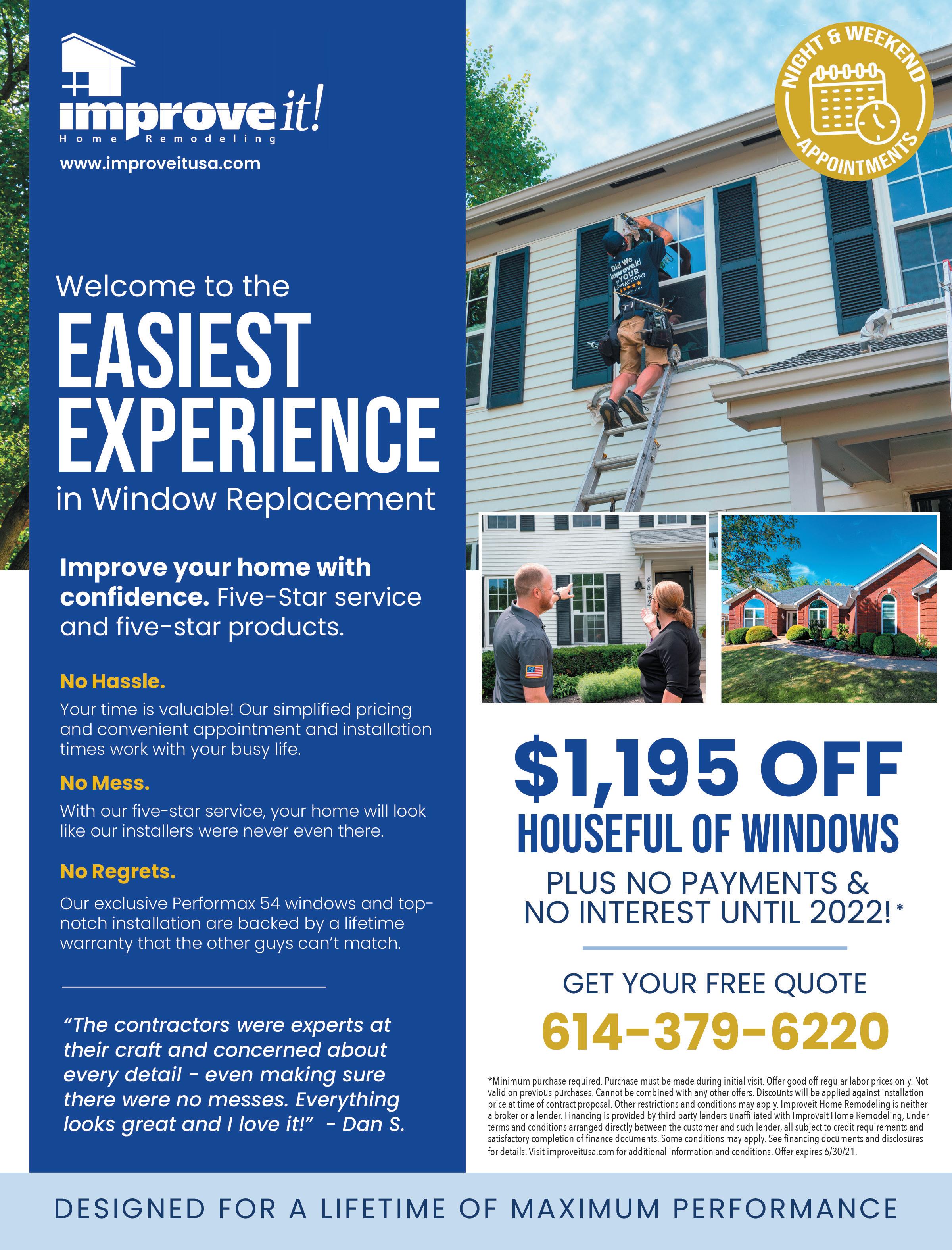 Must mention coupon when scheduling. Not valid with other o ers or discounts. Some restrictions apply. Expires 6/22/21 614 - 957 - 7785