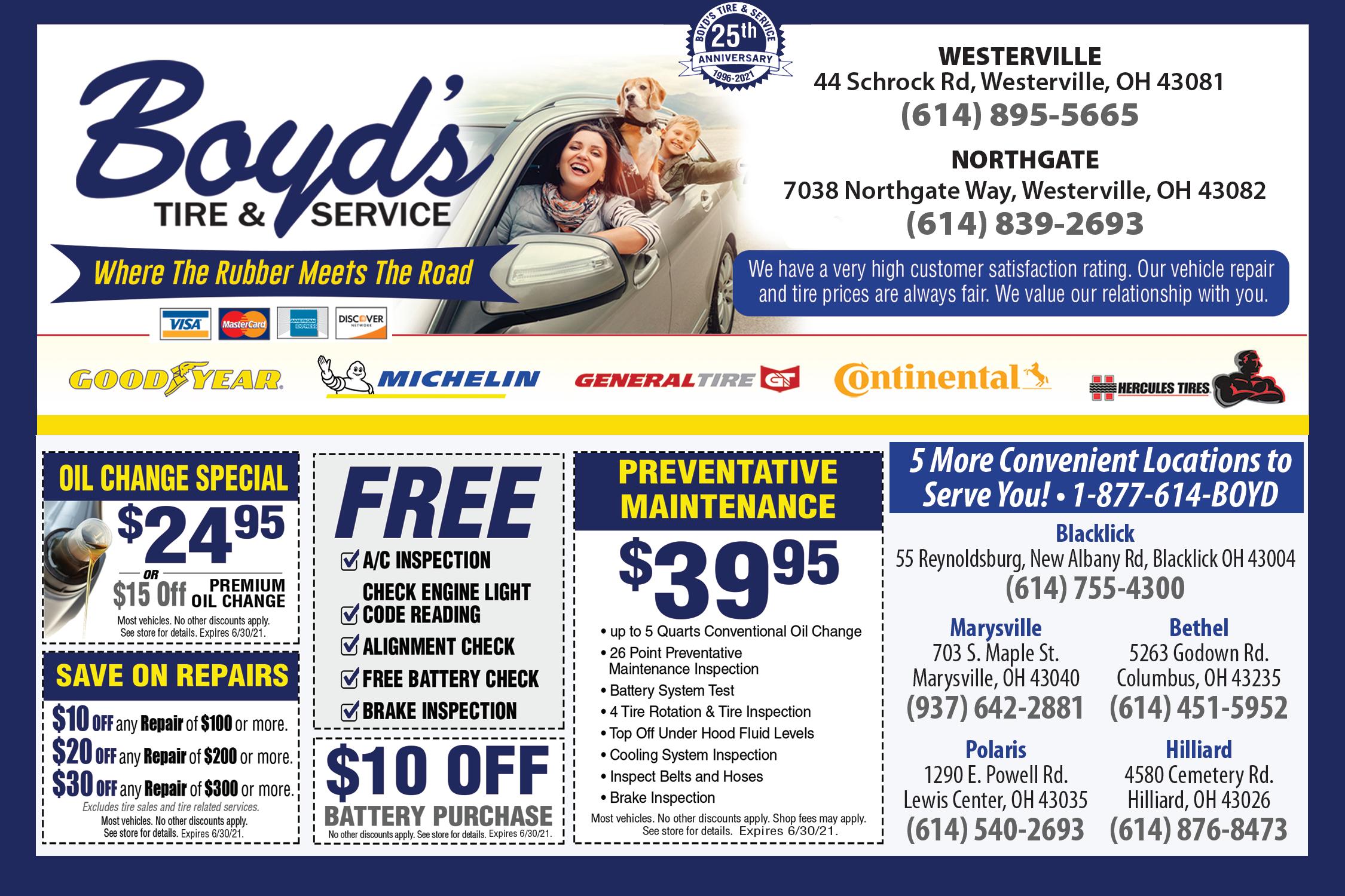 IF YOU NEED... Gravel, Tailgating, Grading, Reconstruction, or a Whole New Driveway, WE CAN HELP! www.drivewayohio.com • 740-967-2444 Locally Owned Personalized On-Site FREE Estimate Visit our website or Facebook to see video on our 4 step process to reclaim and refresh your driveway! Most cars and trucks. Additional fees may apply. Cannot be combined with any other coupon or offer. Must present coupon at time of service. Expires 6/24/21. WEST SUMMER TRAVEL SPECIAL $25 OFF 15% OFF Lube, oil, & filter change, 42 point inspection, tire rotation, cooling system check, Alignment Check & brake inspection! A Coolant or Transmission Service Any Service Over $350.00 (Cannot exceed $100) Starting at $44.95 Cannot be combined with any other coupon or offer. Must present coupon at time of service. Expires 6/24/21. WEST *Excludes oil changes and tires. Cannot be combined with any other coupon or offer. Must present coupon at time of service. Expires 6/24/21. WEST