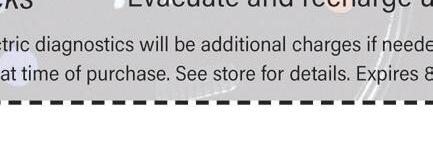 AIR CONDITIONING $ 15 OFF REGULAR PRICE AIR CONDITIONING SERVICE. REFRIGERANT ADDITIONAL dit approval. Get a $75 Prepaid Card with purchase or $150 Prepaid Card with purchase on the Goodyear Credit Card of: Assurance WeatherReady, Eagle Exhilarate, Eagle F1 Asymmetric All-Season excluding ROF + SCT, and Wrangler All-Terrain Adventure with Kevlar. Get a $50 Prepaid Card with purchase or $100 Prepaid Card with purchase on the Goodyear Credit Card of: Assurance ComforTred Touring, Wrangler DuraTrac, and Wrangler Fortitude HT. Get a $25 Prepaid Card with purchase or $50 Prepaid Card with purchase on the Goodyear Credit Card of: Assurance All-Season, Assurance MaxLife, Eagle Sport All-Season excluding ROF + SCT, Ultra Grip Ice, Ultra Grip Ice WRT, Ultra Grip ted. Mastercard is a registered trademark of Mastercard International Incorporated. This Prepaid Card may be used everywhere ths, and other terms, conditions, and fees may apply. Not valid on previous purchases. Cannot be combined with other Goodyear rebate offers. Rebate forms must be postmarked no later than 1/31/20. Base portion of rebate offered by Goodyear, and bonus portion of rebate offered by Citibank, N.A. Goodyear is not affiliated with Mastercard. Additional terms, conditions, and fees apply. See participating retailer for complete details and WINTERCOMMAND ULTRA GRIP ® OFFERS AVAILABLE AT THE FOLLOWING LOCATIONS: on purchases made from October 1 to December 31, 2019. YOUR TOTAL CAR CARE CENTER SLIDING SCALE SAVINGS SAVE! THE “SLDING SCALE” SERVICE COUPON $100-$199.99 $20 OFF $200-$299.99 $30 OFF $300-$499.99 $40 OFF or MORE $50 OFF AIR AIR *Get up to $75 back by online or mail-in rebate on a qualifying purchase of a set of 4 select Goodyear tires with any form of payment method; plus get an added rebate of up to $75 more when the purchase is made on the Goodyear Credit Card. Subject to credit approval. Prepaid Card with purchase on the Goodyear Credit Card of: Assurance WeatherReady, Eagle Exhilarate, Eagle F1 Asymmetric All-Season excluding ROF + SCT, and Wrangler All-Terrain Adventure with Kevlar. Get a $50 Prepaid Card with purchase or $100 Prepaid Assurance ComforTred Touring, Wrangler DuraTrac, and Wrangler Fortitude HT. Get a $25 Prepaid Card with purchase or $50 Prepaid Card with purchase on the Goodyear Credit Card of: Assurance All-Season, Assurance MaxLife, Eagle Sport All-Season excluding ROF Ice WRT LT, WinterCommand, and WinterCommand LT. Rebates paid in the form of a Goodyear Prepaid Mastercard . This Prepaid Card is issued by Sunrise Banks N.A., Member FDIC, pursuant to a license from Mastercard International Incorporated. Mastercard is a registered trademark of Mastercard International Incorporated. Mastercard debit cards are accepted. Registration, activation, acceptance, or use of this Prepaid Card constitutes acceptance of the terms and conditions stated in the Prepaid Card Agreement. Prepaid Cards will not have cash access and expire after 6 months, and Offers available only at participating U.S. Goodyear retailers and websites. Offers valid only for U.S. residents who are individual consumers with mailing addresses in the U.S. and U.S. territories. Commercial fleets are not eligible for these rebates. Not valid on Goodyear rebate offers. Rebate forms must be postmarked no later than 1/31/20. Base portion of rebate offered by Goodyear, and bonus portion of rebate offered by Citibank, N.A. Goodyear is not affiliated with Mastercard. Additional terms, conditions, and fees apply. rebate forms. Goodyear Credit Card is issued by Citibank, N.A. are trademarks or registered trademarks of E.I. du Pont de Nemours and Company used under license by The Goodyear Tire & Rubber Company and affiliates. ©2019 The Goodyear Tire & Rubber Company. All rights reserved. on purchases made from October 1 to December 31, 2019. ASSURANCE ® MAXLIFE ™ ASSURANCE ® ALL-SEASON ULTRA on purchases made from October 1 to December 31, 2019. YOUR TOTAL CAR CARE CENTER SLIDING SCALE SAVINGS SAVE! FLUID CHANGE Brake, Steering, Transmission THE “SLDING SCALE” SERVICE COUPON $20 OFF $30 OFF $40 OFF $50 OFF OFF AIR $ REGULAR AIR REFRIGERANT mail-in rebate on a qualifying purchase of a set of 4 select Goodyear tires with any form of payment method; plus get an added rebate of up to $75 more when the purchase is made on the Goodyear Credit Card. Subject to credit approval. Goodyear Credit Card of: Assurance WeatherReady, Eagle Exhilarate, Eagle F1 Asymmetric All-Season excluding ROF + SCT, and Wrangler All-Terrain Adventure with Kevlar. Get a $50 Prepaid Card with purchase or $100 Prepaid Card Wrangler DuraTrac, and Wrangler Fortitude HT. Get a $25 Prepaid Card with purchase or $50 Prepaid Card with purchase on the Goodyear Credit Card of: Assurance All-Season, Assurance MaxLife, Eagle Sport All-Season excluding ROF + SCT, WinterCommand LT. Goodyear Prepaid Mastercard . This Prepaid Card is issued by Sunrise Banks N.A., Member FDIC, pursuant to a license from Mastercard International Incorporated. Mastercard is a registered trademark of Mastercard International Incorporated. accepted. Registration, activation, acceptance, or use of this Prepaid Card constitutes acceptance of the terms and conditions stated in the Prepaid Card Agreement. Prepaid Cards will not have cash access and expire after 6 months, and other participating U.S. Goodyear retailers and websites. Offers valid only for U.S. residents who are individual