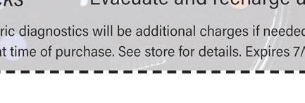 AIR CONDITIONING $ 15 OFF REGULAR PRICE AIR CONDITIONING SERVICE. REFRIGERANT ADDITIONAL WINTERCOMMAND ULTRA GRIP OFFERS AVAILABLE AT THE FOLLOWING LOCATIONS: on purchases made from October 1 to December 31, 2019. YOUR TOTAL CAR CARE CENTER SLIDING SCALE SAVINGS SAVE! THE “SLDING SCALE” SERVICE COUPON $100-$199.99 $20 OFF $200-$299.99 $30 OFF $300-$499.99 $40 OFF or MORE $50 OFF AIR AIR on purchases made from October 1 to December 31, 2019. ASSURANCE ® MAXLIFE ™ ASSURANCE ® ALL-SEASON ULTRA EAGLE ® EXHILARATE ™ ASSURANCE ® WEATHERREADY ® on purchases made from October 1 to December 31, 2019. OUR BEST DEALS OF THE SEASON WRANGLER ® ALL-TERRAIN ADVENTURE W/ KEVLAR ® UPGRADE ASSURANCE ® MAXLIFE ™ ASSURANCE ® ALL-SEASON BACK* ON A SET OF 4 SELECT GOODYEAR® TIRES ADDED BONUS OF MORE* WHEN YOU USE THE GOODYEAR CREDIT CARD YOUR TOTAL CAR CARE CENTER SLIDING SCALE SAVINGS SAVE! FLUID CHANGE Brake, Steering, Transmission THE “SLDING SCALE” SERVICE COUPON $20 OFF $30 OFF $40 OFF $50 OFF OFF AIR $ REGULAR AIR REFRIGERANT on purchases made from October 1 to December 31, 2019. WITH OUR BEST DEALS OF THE SEASON UPGRADE SAVE OCTOBER 1 - DECEMBER 31 ASSURANCE ® MAXLIFE ™ ULTRA GRIP ICE BONUS OF MORE YOU USE THE GOODYEAR CREDIT CARD Must present coupon to get this offer. Savings off regular price. No other discounts apply. Additional charges for shop supplies may be added. Will be deducted from Gallagher Tire and Automotive price at the time of purchase. Redeem at Gallagher Tire and Automotive. Offer ends 7/31/21 TMS SLIDING SCALE SAVINGS December 31, 2019. ASSURANCE ® ALL-SEASON CENTER SAVINGS SAVE! SCALE” COUPON $20 OFF $30 OFF $40 OFF $50 OFF 31, 2019. ASSURANCE MAXLIF GALLAGHER TIRE & AUTOMOTIVE SERVICE CENTER 3050 WOODMAN DR. • KETTERING, OH 45420 • 937-298-7269 YOUR TOTAL CAR CARE CENTER FLUID CHANGE SPECIAL BRAKE SPECIAL SLIDING SCALE SAVINGS $ 50 OFF SAVE! ANY FLUID CHANGE Antifreeze, Brake, Power Steering, Transmission ANY BRAKE SERVICE OF $100 OR MORE Come see us if your: Brake-warning light is on, you hear grinding or squealing, you notice a change in braking pressure. OIL CHANGE SPECIAL $ 22 95 Conventional Valvoline Oil Change or $15 OFF Synthetic Oil Change. Includes Free 4 Tire Rotation & Brake Inspection Regular Price ($25 per Axle) THE “SLDING SCALE” SERVICE COUPON UP TO $100-$199.99 $20 OFF $200-$299.99 $30 OFF $300-$499.99 $40 OFF $500 or MORE $50 OFF $ 15 OFF AIR CONDITIONING $ 15 OFF REGULAR PRICE AIR CONDITIONING SERVICE. REFRIGERANT ADDITIONAL *Get up to $75 back by online or mail-in rebate on a qualifying purchase of a set of 4 select Goodyear tires with any form of payment method; plus get an added rebate of up to $75 more when the purchase is made on the Goodyear Credit Card. Subject to credit approval. Get a $75 Prepaid Card with purchase or $150 Prepaid Card with purchase on the Goodyear Credit Card of: Assurance WeatherReady, Eagle Exhilarate, Eagle F1 Asymmetric All-Season excluding ROF + SCT, and Wrangler All-Terrain Adventure with Kevlar. Get a $50 Prepaid Card with purchase or $100 Prepaid Card with purchase on the Goodyear Credit Card of: Assurance ComforTred Touring, Wrangler DuraTrac, and Wrangler Fortitude HT. Get a $25 Prepaid Card with purchase or $50 Prepaid Card with purchase on the Goodyear Credit Card of: Assurance All-Season, Assurance MaxLife, Eagle Sport All-Season excluding ROF + SCT, Ultra Grip Ice, Ultra Grip Ice WRT, Ultra Grip Ice WRT LT, WinterCommand, and WinterCommand LT. EAGLE EXHILARATE™ ASSURANCE® WEATHERREADY By online or mail-in rebate. Rebates paid by Goodyear Prepaid Mastercard® on purchases made from October 1 to December 31, 2019. WITH OUR BEST DEALS OF THE SEASON WRANGLER ® ALL-TERRAIN ADVENTURE W/KEVLAR UPGRADE ANDSAVE OCTOBER 1 - DECEMBER 31 ASSURANCE ® MAXLIFE ASSURANCE ALL-SEASON WINTERCOMMAND ULTRA GRIP ® ICE GET $75 BACK ON A SET OF 4 SELECT GOODYEAR® TIRES AN ADDED BONUS OF $75 MORE WHEN YOU USE THE GOODYEAR CREDIT CARD FORTITUDEWRANGLER®HT WRANGLER DURATRAC® ASSURANCE ® COMFORTRED® TOURING GET $50 BACK ON A SET OF 4 SELECT GOODYEAR TIRES AN ADDED BONUS OF $50 MORE WHEN YOU USE THE GOODYEAR CREDIT CARD GET $25 BACK* ON A SET OF 4 SELECT GOODYEAR TIRES AN ADDED BONUS OF $25 MORE WHEN YOU USE THE GOODYEAR CREDIT CARD