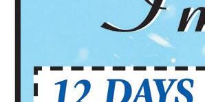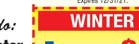 419.866.7400 l www.bassettnut.com 6210 Merger Dr. Holland, OH 43528 Factory Outlet Store • OPEN TO THE PUBLIC • $10 OFF $40 or more With coupon. Not valid with other offers. Expires 12/31/21 $3450 Normal installation to existing electrical, ductwork and drain. SHREK HEAING & A/C • 419-410-3830 With TMS coupon. Exp. 12/31/21 SHREK HEAING & A/C • 419-410-3830 With TMS coupon. Exp. 12/31/21 FURNACE CLEAN & CHECK SHREK HEAING & A/C • 419-410-3830 With TMS coupon. Exp. 12/31/21 SHREK HEAING & A/C • 419-410-3830 With TMS coupon. Exp. 12/31/21 FREE SERVICE CALL WITH PAID REPAIR $139 VALUE! 40 Gallon Natural Gas/ Standard Vent FREE ESTIMATES Furnace $139 419-410-3830 shrekheating@gmail.com Residential Heating & Cooling Specialists Subject to availability. Tis the Season to Be Warm & Cozy! 10% OFF All services for Frontline Workers INSTALLED BRANDS MAY VARY 96% Efficient Up to 60,000 BTU EMC Blower Ohio License #48537 $1500 WATER HEATER INSTALLED FRIDAY & SATURDAY $ HAPPY HOUR MON-SAT •2PM-6PM & 8PM-10PM 3302 GLANZMAN RD • TOLEDO Tacos ¢ 99 ¢ 99 Bottled Domestic Beer Taco Tuesday ALL DAY! MI HACIENDA 419-380-0411 15% OFF Dine-In or Carry-Out Excludes Alcohol • 1 Coupon Per Table Not valid with any other coupons or specials. Exp. 1/1/2022 MI HACIENDA 419-380-0411 10% OFF Dine-In • Excludes Alcohol • 1 Coupon Per Table YOUR TOTAL BILL! LUNCH SPECIAL! MON-SAT 11 TO 2:30 TMS coupon. Not valid with any other coupons or specials. Exp.1/1/2022 PARTY ROOM AVAILABLE! a OPEN 7 DAYS A WEEK! MON-SAT 11-10 SUN-11-9 11am - 2:30pm Everyday! LUNCH BUFFET ORDER ONLINE: www.mihaciendamexican.com 419-380-0411 KIDS EAT FREE! SUNDAY DINE IN ONLY 1 FREE KIDS MEAL PER ADULT ENTREE PURCHASE DINE IN ONLY DRINK SPECIALS ALL DAY! Monday JUMBO House Margarita and Dra� Beer Specials ALL DAY! Street Tacos $2.50 Nacho Appe�zer & Small Margarita Special ALL DAY! Wednesday HOUSE, TEXAS, OR GOLDEN Thursday 1/2 PITCHERS OF MARGARITAS $ 2 HOUSE, TEXAS, OR GOLDEN PITCHER OF MARGARITAS Karaoke Every Sat. 6 pm- 9pm check on FACEBOOK for dates. Every Friday is DANCE NIGHT FRIDAY! with D J - Juanio - 10 pm - 2:00 am. BUY A $30 GIFT CARD FOR ONLY $25 Closed December 25th and January 1st. Open Christmas Eve and New Years Eve 11-8