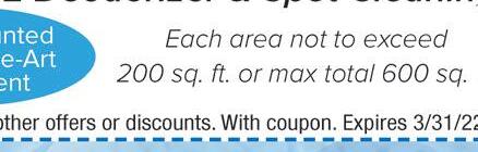 Toledo Landscape Supply T L Topsoil • Mulch Grass Seed & The Andersons Crabgrass Fertilizer 1951 Tremainsville 419973-0829 toledolandscapesupply.com Toledo Delivery Available! 10% OFF per bag of MULCH with 5 bags purchased % Bag & Bulk MULCH fertilizer 10% OFF per yard of MULCH 10% OFF grass seed 10% OFF Serving NW Ohio & SE Michigan 419-729-9966 Carpet Cleaning 3 areas ... $115 4 areas ... $125 5 areas ... $135 6 areas ... $145 Min. charge $100. Plus tax. Residential use only. L-shaped areas or areas exceeding 250 sq. ft. are considered 2 areas. Cannot be used with other discounts. Coupon expires 3/31/22 Furniture Cleaning Couch ..... $70 Loveseat . $60 Chair ....... $45 Plus tax. Minimum charge $100. Cannot be used with other discounts. Coupon expires 3/31/22 We steam clean Ceramic Tile, Grout & Concrete ToledoCarpetAndMold.com • ToledoFloodedBasement.com A+ Ask about Reviews 5.0 FAST DRYING Professional State-of-the-Art Truck Mounted Steam Cleaning NOT HOT WATER! The Grycza Family since 1988 HOUR Flood & Mold Restoration Certified Technicians FREE Deodorizer for All areas cleaned!