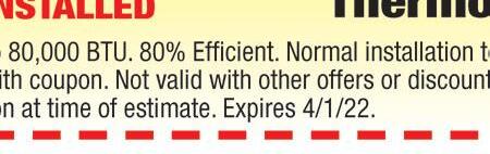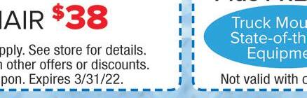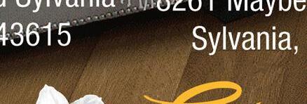 GROOMING SALON Since 1960 PROFESSIONAL GROOMS & STYLING LICENSES NO TRANQUILIZERS... Just Love! 1467 W. Alexis 419.478.1073 PICK UP & DELIVERY AVAILABLE www.babettesdoggrooming.com Next to Battery Wholesale HOURS: Tues-Sat 6:30am-3:00pm ALL BREEDS & SIZES WELCOME! $5 OFF Regular or New Customers Limit 1 per family. Not valid with any other offers. Expires 3/31/22 5226 Monroe St • 419-843-4472 ROHR Fish Inc. Complete line of Fresh & Saltwater Fish, Seafood & Fresh Prepared Specialities! SEAFOOD SENSATIONS Salmon Cakes • Crab Cakes Lobster Dip • Shrimp Dip SOUPS Clam Chowder • Seafood Chowder ROHR FISH INC. ROHR FISH INC. $2 OFF Any purchase of $20 or more HOURS: Mon-Fri 9:30-5 Sat 9:30-4 Closed Sun Not valid with other offers. Expires 3/31/22 Shrimp Lovers Paradise! $1 OFF every pound of shrimp Not valid with other offers. Expires 3/31/22 Large Variety • No Limit Toledo’s #1 Gourmet Seafood Company Try Rohr’s Homemade “Heat & Serve” GAS LEAK Search & Repair SHREK HEAING & A/C • 419-410-3830 With TMS coupon. Exp. 3/31/22 SERVICE CALL WITH PAID REPAIR $139 VALUE! 40 Gallon Natural Gas/ Standard Vent Subject to availability. 3,200 Normal installation to existing electrical, ductwork & drain. SHREK HEAING & A/C 419-410-3830 Furnace INSTALLED BRANDS MAY VARY 96% Efficient Up to 60,000 BTU EMC Blower WATER HEATER INSTALLED OFF With TMS coupon.Exp. 3/31/22 SHREK HEAING & A/C • 419-410-3830 With TMS coupon. Exp. 3/31/22 SHREK HEAING & A/C • 419-410-3830 With TMS coupon. Exp. 3/31/22 FREE ESTIMATES 419-410-3830 shrekheating@gmail.com Residential Heating & Cooling Specialists 10% OFF All services forFrontline Workers $ 150 $ 1,500 Ohio License #48537 FREE We Keep You Comfortable In Every Season! YELL The Flooring Professionals 419-472-7190 Corner of Secor & Alexis Coupon Must Be Presented At Time Of Purchase. Expires 3/31/22 10% Materials Only Modern Floors off