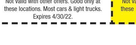 20Minute OilChange! FAIRBORN EXPRESS 1276SterlingCt ShoporScheduleOnlineatjamiestire.com! 6ConvenientLocations! Comemeet yournewneighbors! 47YearsofTireandAutoService! OILCHANGE ALIGNMENT BRAKESERVICE TIRESPECIAL NEW LOCATION! DAYTON NORTHRIDGE 6104NDixieDr. (937)890-7340 FAIRBORN BEAVERCREEK XENIA DAYTON NORTHTOWN 4220NMainSt. (937)276-5061 Mostcarsandlighttrucks.Some vehiclesrequireadditionalparts orattentionduetoloweringor lifting.Mustpresentcoupon, savingsoffregularprice.Notvalid withotheroffers.Expires4/30/22 Upto5qtsconventionaloil.Must presentcoupon,savingsoff regularprice.Notvalidwithother offers.Expires4/30/22 TMSLOF TMSALIGN TMSBRAKE TMSTIRES Mustpresentcoupon,savingsoff regularprice.Notvalidwithother offers.Expires4/30/22 Offergoodonpurchaseof4tires. Saveinadditiontorebates.Must presentcoupon,savingsoff regularprice.Notvalidwithother offers.Expires4/30/22 CONVENTIONAL OR $8OFFAny Synthetic OilChange ANYBRAKE SERVICEOF$100 ORMORE. ANY4NEWTIRES, INSTALLED! WheelAlignment ($25PerAxle) 1036Reviews 329Reviews 55Reviews $3495 $10OFF $50OFF $30OFF