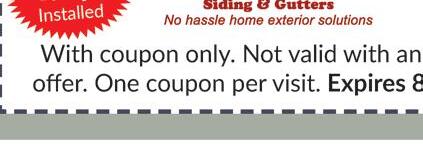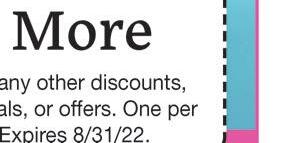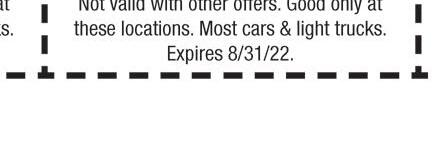 Must mention coupon when scheduling. Not valid with other o ers or discounts. Some restrictions apply. Expires 8/30/22.