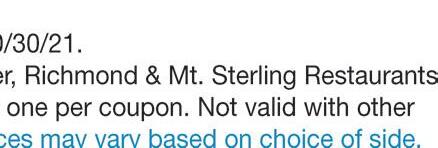 RICHMOND October 2021 Shop locally. Save locally. To advertise, call 270.314.4575 EXPIRES 10/31/21. KENTUCKY ARTISAN CENTER SHOP • DINE • EXPLORE 200 Artisan Way • Berea, KY 40403 • 859-985-5448 Open Daily 9 am – 6 pm Must present this coupon to receive discount. Only 1 coupon per customer, per purchase, per day. Not valid with any other promotions. Expires 12/31/21. KENTUCKY ARTISAN CENTER 10% OFF Any Retail Purchase Excluding Consigned Items Must present this coupon to receive discount. Only 1 coupon per customer, per purchase, per day. Not valid with any other promotions. Expires 12/31/21. KENTUCKY ARTISAN CENTER 10% OFF Any Retail Purchase Excluding Consigned Items