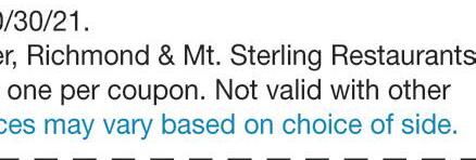 OctoberSpecial Minimum of 25 sq ft 15% OFF TILE! We Now Carry Tile! (859) 575-1558 635.5 Big Hill Ave., Richmond, KY 40475 “Rock & Roll” with Madison County’s ONLY fabrication shop for Granite, Marble, Quartz, and Dekton Countertops! with purchase of 50 sq. ft. or more $38 Caledonia & Luna Pearl Granite only Min. 30 sq. ft. SQ. FT. FREE SINK Luna Pearl Caledonia The ellipse-shaped logo and all other DQ® trademarks are owned by Am. D.Q. Corp. Mpls, MN. © 2021. New Sea Salt Toffee Fudge 1007 Sylvia Drive Across from Lake Reba NOW HIRING New Blizzard® TREAT Menu OREO® Mocha Fudge New REESE’S PIECES Cookie Dough Choco Dipped Strawberry Royal Ultimate Choco Brownie Filled with Fudge