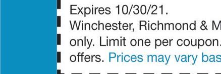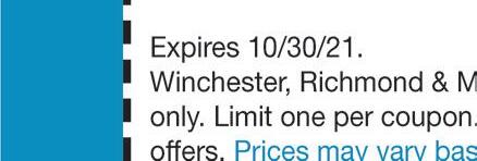 • 4 colors to choose from • Up to 50 sq. ft. installed • + FREE Stainless Steel Sink 238 N Keeneland Dr. Richmond, KY 40475 859-353-8224 *Restrictions may apply. GRANITE SPECIAL $1,999* • 12 colors to choose from • Up to 50 sq. ft. installed • + FREE Stainless Steel Sink 25 N Keeneland Dr QUARTZ SPECIAL $2,499* ACCEL AUTO CARE With TMS coupon. Most cars & light trucks. Not valid with other offers. Expires 10/31/21 ACCEL AUTO CARE With TMS coupon. Most cars & light trucks. Not valid with other offers. Expires 10/31/21 ACCEL AUTO CARE With TMS coupon. Most cars & light trucks. Not valid with other offers. Expires 10/31/21 ACCEL AUTO CARE With TMS coupon. Most cars & light trucks. Not valid with other offers. Expires 10/31/21 ACCEL AUTO CARE October Car Care Specials! 245 N. Keeneland Dr., Richmond KY 40475 859.626.3365 www.accelautocare.net Car Care Specials! BRAKE PADS & ROTORS SPECIAL FREE TIRE ROTATION $23999 FULL SYNTHETIC OIL CHANGE $2999 UP TO 5 QT.S FREE WINTER INSPECTION