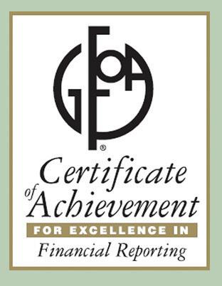 • Recipient of the Government Finance Officers Association (GFOA) Certificate of Achievement for Excellence in Financial Reporting for the District’s Comprehensive Annual Financial Report (CAFR) (5 straight years)
