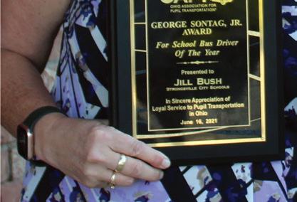 Jill Bush, Strongsville City Schools bus driver since 2008, received The George Sontag, Jr. School Bus Driver of the Year Award for 2021. This annual award recognizes bus drivers who exhibit outstanding leadership and professional conduct in the school transportation field, both in the district they represent, as well as in the State of Ohio.
