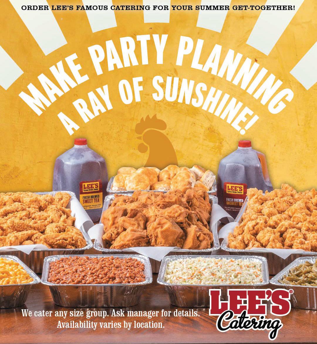 10-PIECE MEAL Includes 10 pieces of Mixed Classic Chicken, 2 large sides and 5 biscuits $24.99 3-WING SNACK Includes 3 chicken wings and a biscuit $3.99 20-PIECE BOX Includes 20 pieces of Mixed Classic Chicken $27.99 LARGE ORDER OF LIVERS OR GIZZARDS Includes 1 pint of livers or gizzards $3.99 8-PIECE BOX Includes 8 pieces of Mixed Classic Chicken $12.99 COUNTRY FRIED STEAK MEAL Includes 2 country fried steaks, coleslaw, mashed potatoes & gravy and a biscuit $5.99 LARGE SIDE $3.99 Family Meal or Box SPICY JUMBO DIPPERS CUP-TO-GO $4.59 Includes all-white meat Spicy Jumbo Dippers and a dipping sauce BREAST MEAL Includes chicken breast, 2 individual sides and a biscuit $4.99 Valid only at participating Lee’s. Buy up to 6 at this price with this coupon. Not valid with any other promotional offer or coupon. Expires 6/23/19. Valid only at participating Lee’s. Buy up to 6 at this price with this coupon. Not valid with any other promotional offer or coupon. Expires 6/23/19. Valid only at participating Lee’s. Buy up to 6 at this price with this coupon. Not valid with any other promotional offer or coupon. Expires 6/23/19. Valid only at participating Lee’s. Buy up to 6 at this price with this coupon. Not valid with any other promotional offer or coupon. Expires 6/23/19. Valid only at participating Lee’s. Buy up to 6 at this price with this coupon. Not valid with any other promotional offer or coupon. Expires 6/23/19. Valid only at participating Lee’s. Buy up to 6 at this price with this coupon. Not valid with any other promotional offer or coupon. Expires 6/23/19. Valid only at participating Lee’s. Buy up to 6 at this price with this coupon. Not valid with any other promotional offer or coupon. Expires 6/23/19. Valid only at participating Lee’s. Buy up to 6 at this price with this coupon. Not valid with any other promotional offer or coupon. Expires 6/23/19. Valid only at participating Lee’s. Buy up to 6 at this price with this coupon. Not valid with any other promotional offer or coupon. Expires 6/23/19. Expires 6/30/21. Expires 6/30/21. Expires 6/30/21. Expires 6/30/21. Expires 6/30/21. Expires 6/30/21. Expires 6/30/21. Expires 6/30/21. Expires 6/30/21.