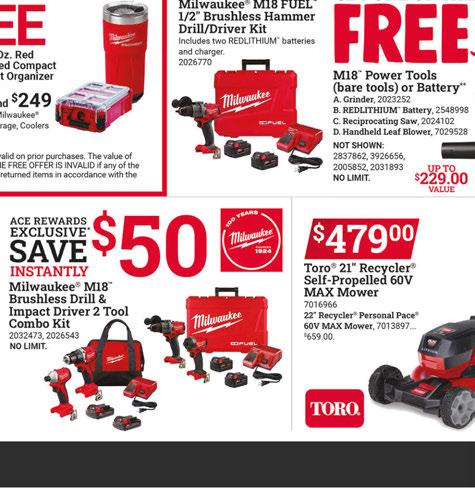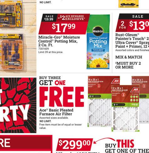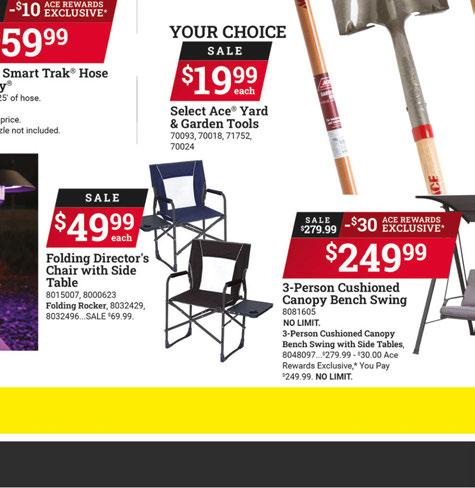 MANY MORE ITEMS ON SALE • COME CHECK US OUT! M-F 8-7 • Sat 8-5 • Sun 10-5 SHOP ONLINE at www.acehardware.com