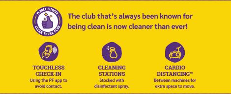 Planet Fitness cleans the entire club multiple times each day and closes each night between 2-3am for a static sprayer disinfecting the entire club.
