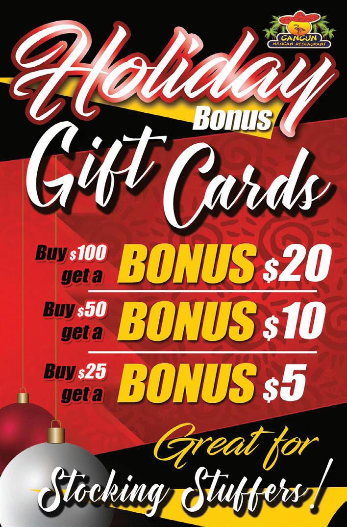 $25 per car/vehicle (Sunday thru Thursday) $30 per car/vehicle (Friday & Saturday) $45 per limo/motorhome/mini bus $100 per tour bus DRIVE THRU CHRISTMAS LIGHT SHOW Presented by: NOW – December 31, 2020 Michigan International Speedway US-12 Entrance only, 12626 US-12 • Brooklyn, Michigan 49230 Sun – Thurs 5:30pm - 9pm • Fri & Sat 5:30pm - 10pm We DO NOT accept “tap and go” cards or Apple Pay. WE DO ACCEPT CASH Most credit cards also accepted nitelitesshow.com $20 OFF 517-263-9940 We’ll help you keep your whole home cool this summer. Shoemaker Heating & Plumbing Bryant. Whatever It Takes.® Protect your home and family Quote www.yourbryantman.com 517-263-9940 $150 OFF Purchase of Furnace and A/C $20 OFF Any Service Only one coupon per customer. Not valid with any other o er. Expires 1/31/21 Only one coupon per customer. Not valid with any other o er. Expires 1/31/21 Schedule your FREE Quote Today! 517-263-9940 | yourbryantman.com We’ll help you keep your whole home warm this winter. As the weather cools down, it’s good to have equipment you can rely on, serviced by a team you can trust. At Shoemaker Heating & Plumbing, we bring attention to detail, the right tools, and experience straight to your door. Whether it’s a quick fix or a new system featuring Perfect HumidityTM technology, we’ve got Bryant products to solve almost any problem at any budget. It’s only going to get colder this winter. When it comes to bringing your whole-home comfort, we’re ready to do whatever it takes. Bryant. Whatever It Takes.® From Our Family to Yours, Have a J ous & Safe Holiday Season!