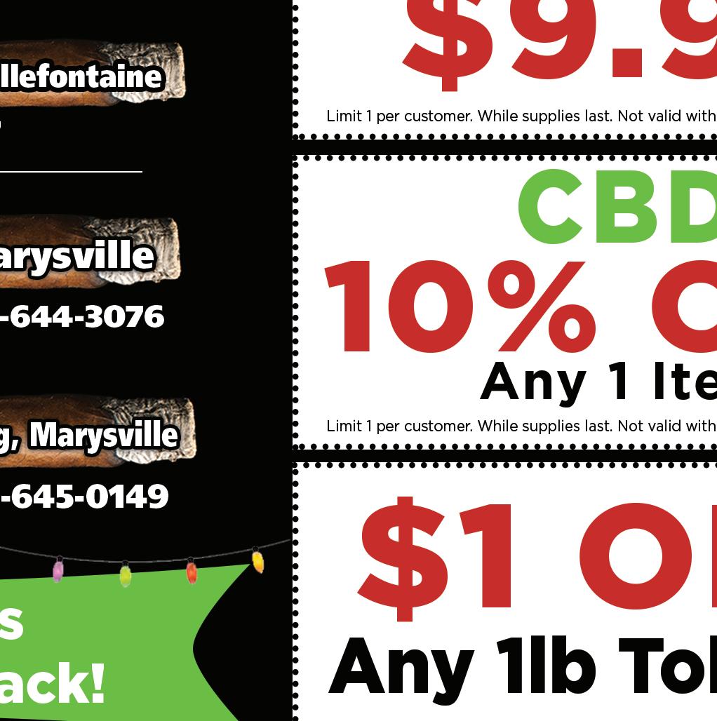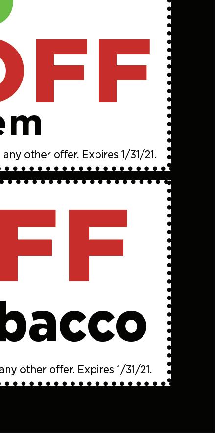 BELLEFONTAINE Published By Town Money Saver, Inc. Corporate Office • PO Box 356 • Lucas, OH 44843 © 2020 TMS Franchising, Inc. All rights reserved. For advertising information, call Lyle 419.905.5005 NEXT ISSUE IN HOMES: January 14, 2021 ADVERTISING DEADLINE: January 1, 2021 POSTAL CUSTOMER PRSRT STD ECRWSS U.S. POSTAGE PAID Town Money Saver, Inc. townmoneysaver.com New Year MEANS NEW BEGINNINGS THE 930 East Sandusky Ave. • Hyland Hills Plaza 937.404.9321 M - F 10AM – 6PM • Sat 12PM – 4PM Award-Winning Organic Hemp-Derived Lab Tested Products Bellefontaine Bellefontaine Bellefontaine Bellefontaine BATH BOMBS Your CBD Store now has a collection of infused synergy bath bombs EUCALYPTUS | LAVENDER | LEMONGRASS PEPPERMINT | ORANGE & YLANG-YLANG $10 OFF $50 OR MORE PURCHASE BUY FOUR (4) BATH BOMBS, GET 1 FREE 10% OFF ANY PET PRODUCT Only one per customer. Expires 1/15/2021 Only one per customer. Expires 1/15/2021 Only one per customer. Expires 1/15/2021