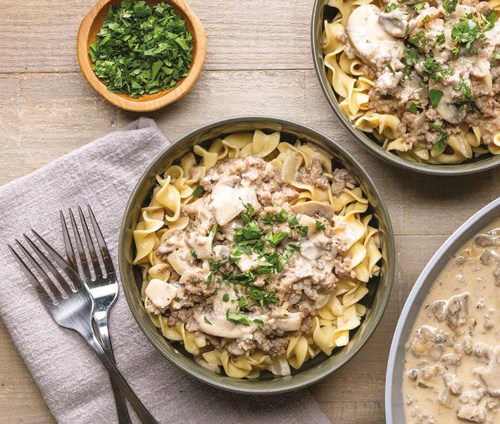 Cook noodles according to package directions. Set aside. In a large skillet, cook sausage, mushrooms, onion and garlic over medium heat until sausage is no longer pink and vegetables are tender, 5-7 minutes. Stir in our, salt and paprika until blended; gradually stir in broth. Bring to a boil, stirring constantly; cook and stir 1-2 minutes or until thickened. Turn o heat. Stir in sour cream. Serve with noodles and sprinkle with parsley.