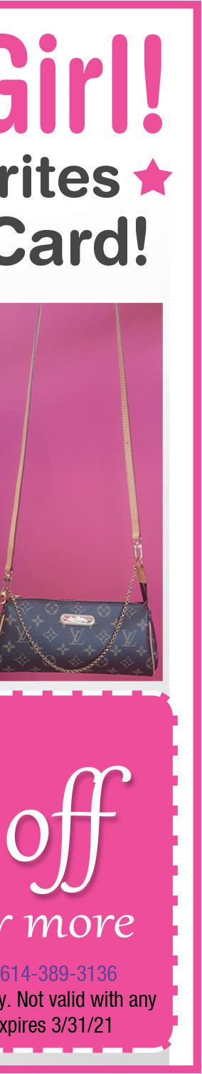 S-7280 • Patented Swivel For Maximum Maneuverability • Automatic Carpet Height Adjustment • Anti-Tipping Device For Enhanced Stability • Great For Allergies & Pets Save $10000 Carmen’s Vacuum WESTERVILLE 320 S. State St. 614-882-8400 NORTH 9709 Sawmill Rd. 614-761-0199 CENTRAL 5520 N. High St. 614-846-9915 CORPORATE (EAST) 4585 Poth Rd. 614-864-5095 SHOP ONLINE 24/7 www.carmensvacuum.com German Made **prices valid until 2/28/21 at all locations Sweet Deals for Valentines Day Carmen’s Vacuum Not valid with any other offers. Expires 2/28/21. Carmen’s Vacuum Not valid with any other offers. Expires 2/28/21. Carmen’s Vacuum Not valid with any other offers. Expires 2/28/21. ULTIMATE TUNE-UP SPECIAL Should be Annually • Clean Motor • Lube Agitator • Adjust Brushes • Clean Brushroll • Check Bearings • Install Bag & Belt • Clean Filters • Clean Bag Housing $5999 Add $10 more for bagless units Carmen’s Vacuum Not valid with any other offers. Expires 2/28/21. V-7 Motorhead Cord-Free Stick Vacuum •Digital V-7 Motor • 30 Minutes of Fade-Free Power • Transforms to a Handheld BEST PRICE AVAILABLE $27999 Made in USA Riccar – R10CV Cordless SupraLite Cordless Upright Vacuum • Lightweight • No Cord • Metal Brush Roll • 44V Lithium Ion Battery Save $15000 Blizzard CX-1 Homecare Vacuum • Bagless Vortex Technology • Lifetime Filter • Hygenic Emptying Come in for DEMO & PRICING! SAVE $200 Come in for A FREE DEMO on Machine Airbelt D4 Premium Canister Vacuum • German Construction • Industry Leading Canister • Vacuum For Carpet & Bare Floors • World’s Best Pet Vacuum MEGA TUNE-UP SPECIAL $8999 NEW Specifically for DYSON & SHARK 20% OFF LIST PRICE On Select NEW Floor Model Vacuums
