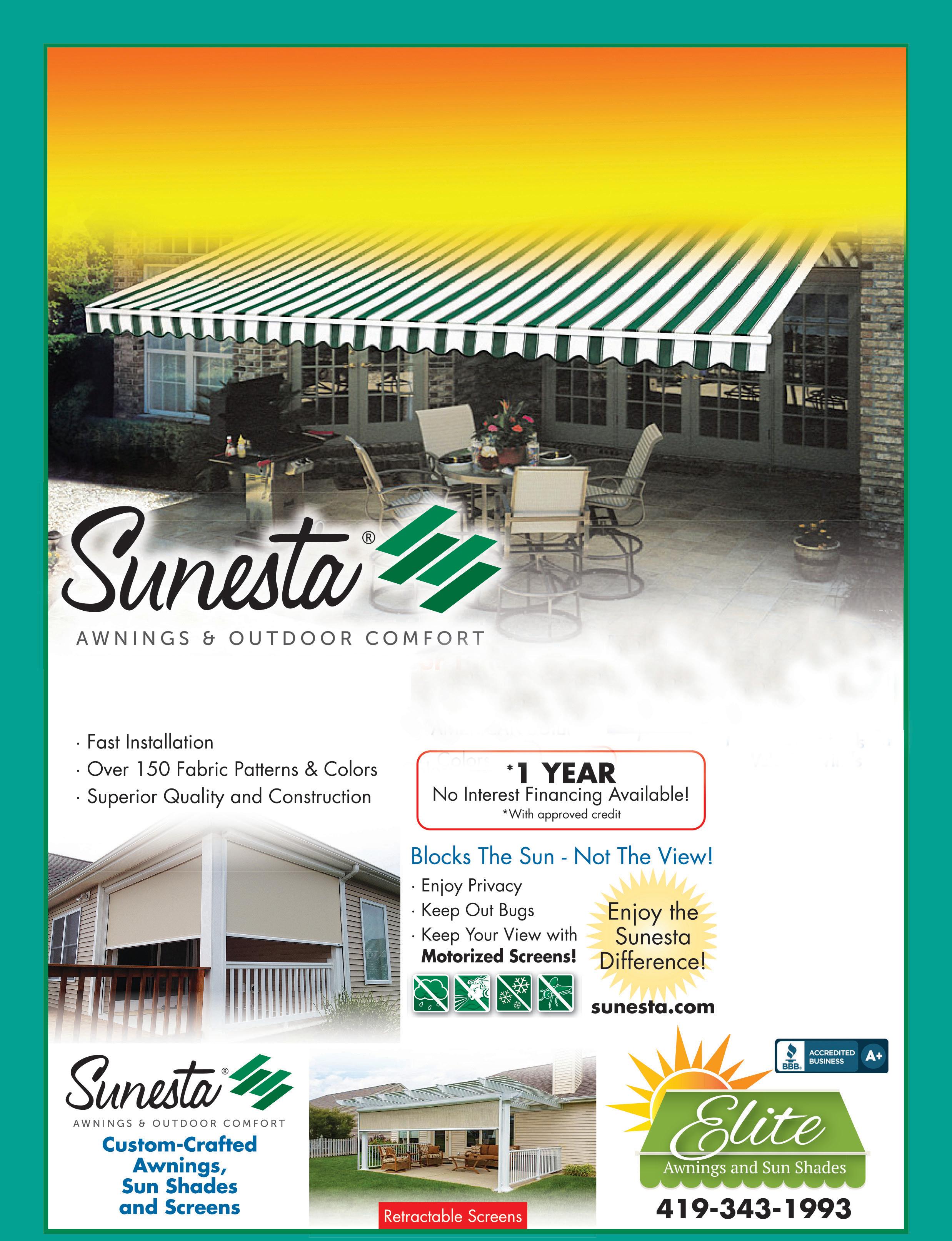 $750 OFF ANY AWNING PLUS FREE Wireless Remote Elite Awnings • 419-343-1993 With TMS coupon. Not valid with other offers. Exp. 4/30/21 Lifetime Warranty** ** See Sunesta.com for details AMERICAN BUILT RECOMMENDED Home & Condo Exact Fit! createyourshade.com