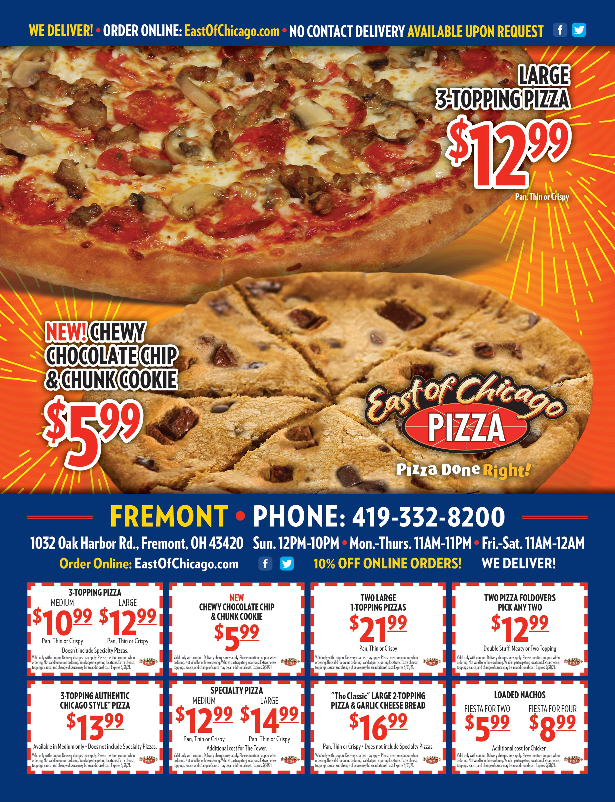 105 South Front St. Fremont Monday - Saturday 9:00am-7:30pm www.elroysdeli.com 419-333-8289 Delivery and Carry- Out available until 10pm WE DELIVER Two large up to three topping pizzas and2liter per pound of any deli meat up to 2lbs. $2 Buy any large pizza at regular menu price and get a cheesybread With coupon. Not valid with any dis d. Expi es 3/14/2021 With coupon. Not valid with any dis t d. Expi es 3/14/2021 With coupon. Not valid with any With coupon. Not valid with any . Expires 3/14/2021 With coupon. Not valid with any discounted. Expires 3/14/2021 With coupon. Not valid with any discounted. Expires 3/14/2021 Drive-Thru Special FREE $19.99 Personal one topping pizza and a fountain beverage for $5.99 Pasta bowl and a fountain beverage for $5.99 $2.00 $10.00 or more purchase Valid in drive -thru only www.lilieBeans.com • info@liliebeans.com 1200 Oak Harbor Road, Fremont 419.355.1111 Valid through April 15th 2021 Some exclusions may apply Come shop with us in March, bring this ad with you and save 25% off any regularly priced item.