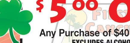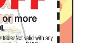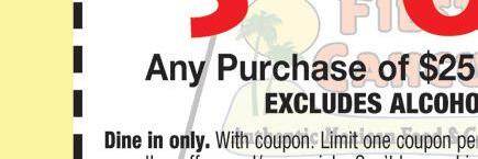 419-433-6017 CARRY OUT & CURBSIDE PICK-UP Family owned and operated 2109 CLEVELAND RD. HURON (Rye Beach Exit) H H H With coupon. One coupon per table. Excludes daily specials & other offers. Expires 04-14-21. With coupon. One coupon per table. Excludes daily specials & other offers. Expires 04-14-21. With coupon. One coupon per table. Excludes daily specials & other offers. Expires 04-14-21. SAVE $2.50 OFF LUNCH Buy 1 lunch at regular price, 2nd is $2.50 off $5.00 OFF Any purchase of $35 or more 419-433-6017 419-433-6017 costaazulhuron.com We appreciate your business! HAPPY HOUR Sun-Thurs 2-7pm Full Pitcher $15.99 Jumbo Margarita 20oz $6.25 12oz Margarita $4.25 * reg. lime only HOURS Sun-Thurs 11am-8:30pm Fri-Sat 11am-9:30pm SAVE $3.50 OFF DINNER Buy 1 at regular price from menu, 2nd is $3.50 off combo meal EVERY DAY: Homemade Soups $1.00 OFF when you mention this ad