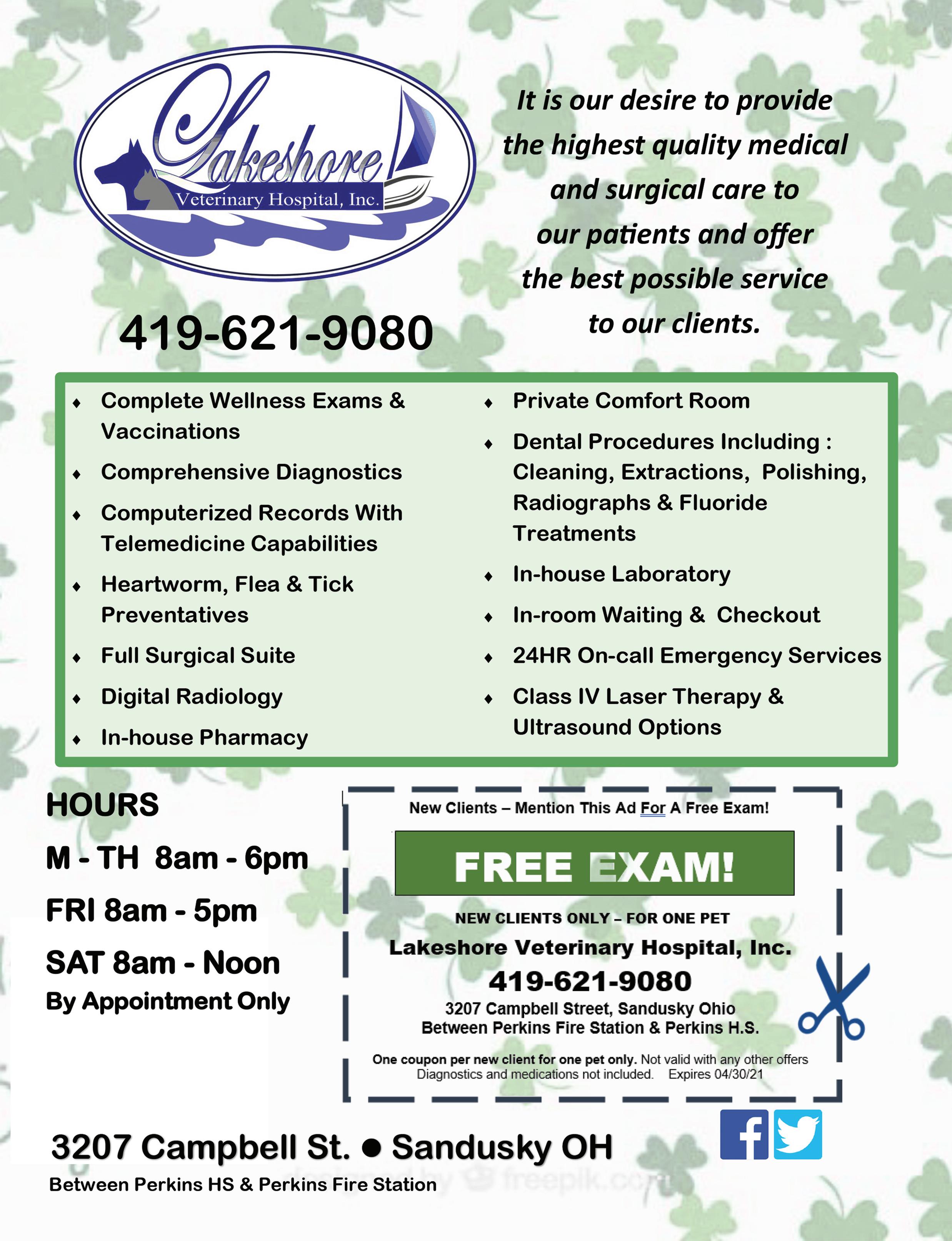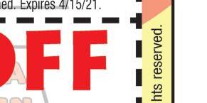 ❄ ❄ Recyle, Repurpose, & Upcycle! Find your hidden treasures and give them new life at the ReStore! FREE DELIVERY SALE! Spend $250 or more, get FREE Delivery! DONATIONS ACCEPTED! Tuesday-Friday 10-5 • Saturday 9-4 “Like” us on Facebook for a chance to win a $50 gift card! 419-621-2207 www.firelandshabitat.org 7602 Milan Road • Sandusky Corner of Fox Road, 1/2 mi. S of Kalahari OPEN TO THE PUBLIC Give your old stuff a chance at a second life. We’ll even come and get it! Offer valid March 1-March 31, 2021 77 E. Main St. • Norwalk 419-668-4665 Toll Free 1-800-423-1310 “We take pride in what you stand on.” Mon & Fri 8:30-5 Tues-Thurs 8:30-4 Sat 9-Noon “Like us” on Visit our website at www.balduffs.com for all your floor covering and carpet cleaning needs. CARPET CLEANING TILE CLEANING FURNITURE CLEANING DUCT CLEANING A Full Service Company Since 1980 All Pet is the ONLY CARPET PROTECTION & WARRANTY for all pets, all accidents, all the time! 2021 SPRING SPECIAL WHOLE HOUSE DUCT CLEANING $50 OFF Minimum fee of $250.00. Must present coupon to receive this price. Tax not included. Cannot be combined with other discounts. Offer valid for one visit only. Expires 04-15-21. Balduff’s CARPET CLEANING THREE AREAS $115 Must present coupon to receive this price. Tax not included. Areas over 250 sq ft of carpet considered a separate area. Cannot be combined with other discounts. Offer valid for one visit only. Expires 04-15-21. Balduff’s 20% OFF Must present coupon to receive discount. Tax not included. Cannot be combined with other discounts. Expires 04-15-21. Balduff’s SMART STRAND CARPET 21% OFF Must present coupon to receive discount. Tax not included. Cannot be combined with other discounts. Expires 04-15-21. Balduff’s SMART CUSHION