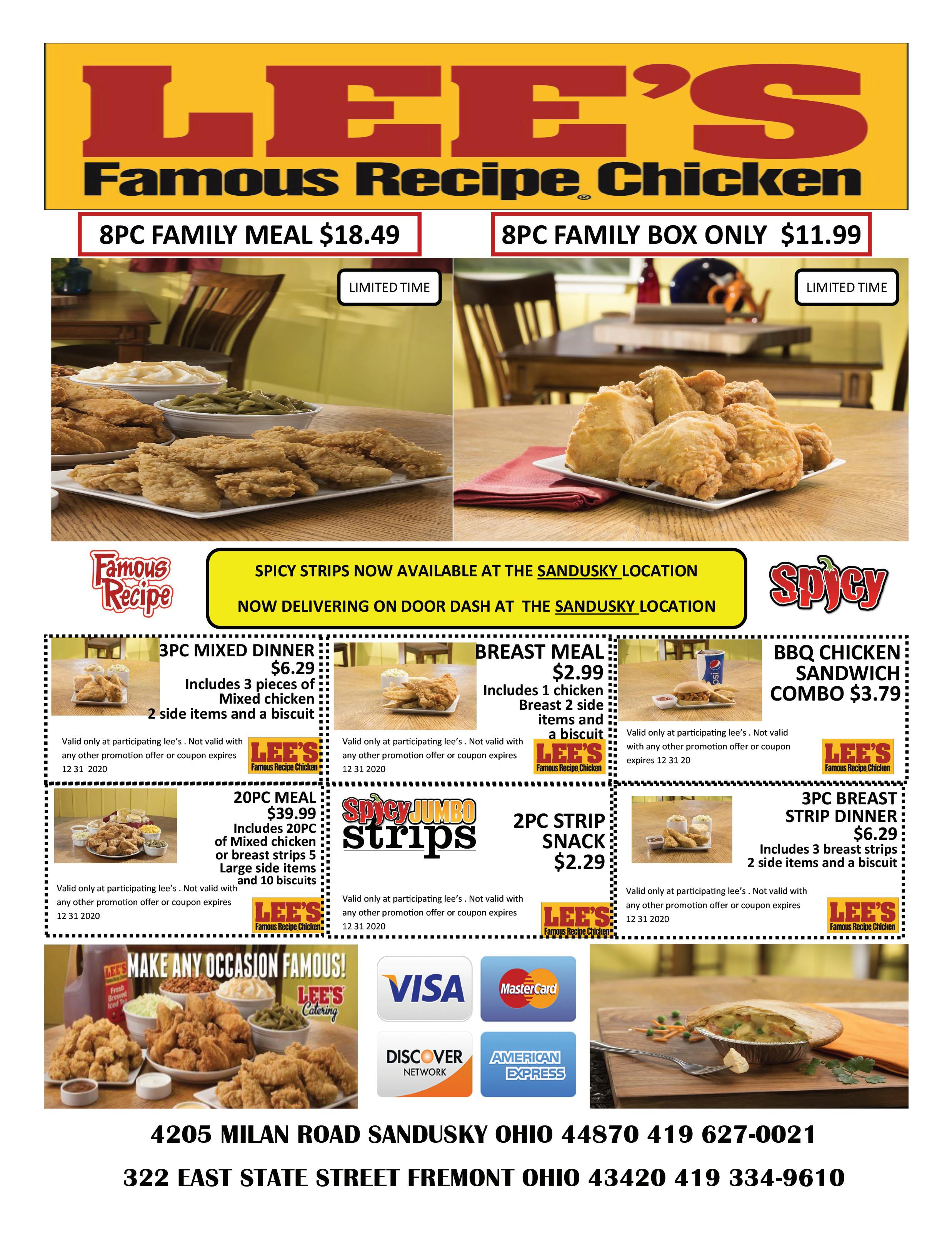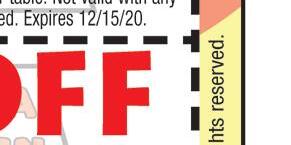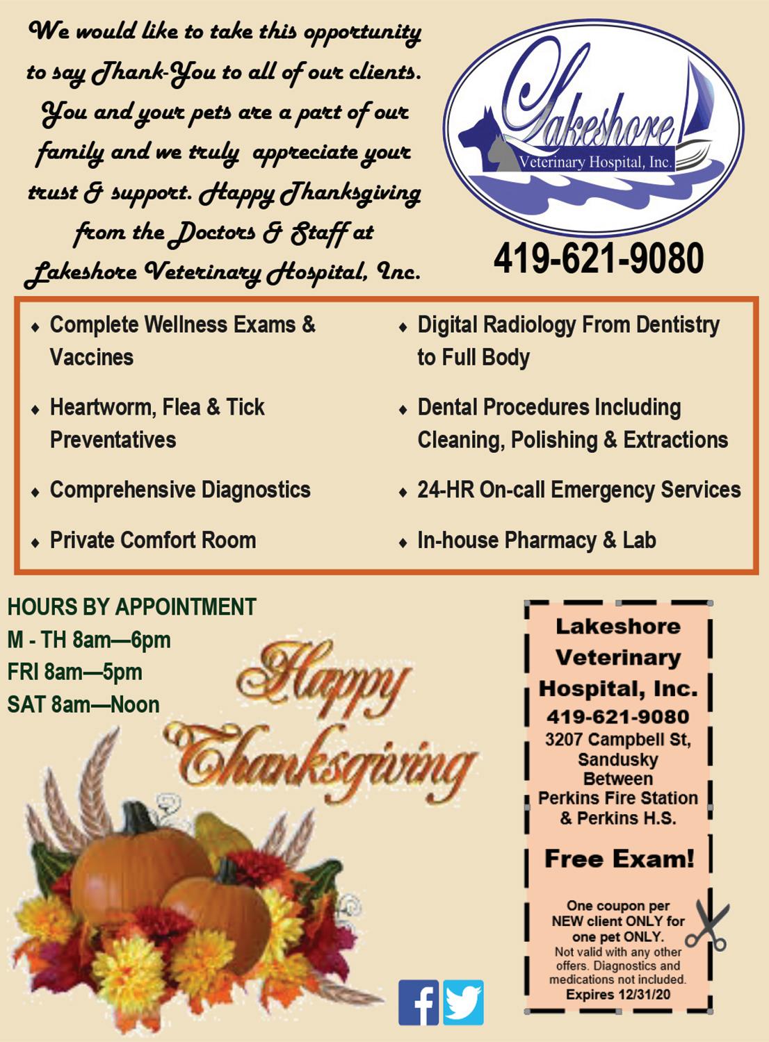 Thanksgiving Catering BlueCateringRibbon 1023 Main St. • Huron www.blueribboncaters.com blueribboncaters@gmail.com 419-668-4000 Let Us Take Care of the Cooking for You! Offering oven-roasted turkey, with homemade dressing and sides...or our famous honey-glazed ham, alone or with all the fixings. You decide! Call or email for information on prices and pick-up. Order deadline is November 19th. Check out our Facebook page for Friday night pick-up specials throughout the holiday season! Party Room • Full Bar Dine-in • Carry-out • Catering 6207 Milan Road • Sandusky, Ohio 419•621•1000 www.dannyboyspizza.com @DannnyBoysPizza1991 NOW HIRING All Positions DINING ROOM OPEN! Doordash DELIVERY 419-433-6017 CARRY OUT AVAILABLE Family owned and operated 2109 CLEVELAND RD. HURON (Rye Beach Exit) H H H With coupon. One coupon per table. Excludes daily specials & other offers. Expires 12-17-20. With coupon. One coupon per table. Excludes daily specials & other offers. Expires 12-17-20. With coupon. One coupon per table. Excludes daily specials & other offers. Expires 12-17-20. SAVE $2.50 OFF LUNCH Buy 1 lunch at regular price, 2nd is $2.50 off $5.00 OFF Any purchase of $35 or more 419-433-6017 419-433-6017 costaazulhuron.com We appreciate your business! HAPPY HOUR Sun-Thurs 2-7pm Full Pitcher $15.99 Jumbo Margarita 20oz $6.25 12oz Margarita $4.25 * reg. lime only HOURS Sun-Thurs 11am-8:30pm Fri-Sat 11am-9:30pm SAVE $3.50 OFF DINNER Buy 1 at regular price from menu, 2nd is $3.50 off combo meal EVERY DAY: Homemade Soups $1.00 OFF when you mention this ad