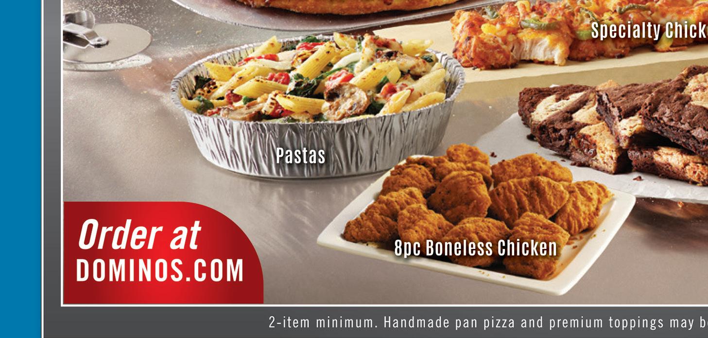 Valid with coupon. At participating restaurants only. Expires 12-15-20. Valid with coupon. At participating restaurants only. Expires 12-15-20. Valid with coupon. At participating restaurants only. Expires 12-15-20. Valid with coupon. At participating restaurants only. Expires 12-15-20. Limited time offer. Delivery charge applies. Premium toppings extra. Expires 12-15-20. at the BP in Huron 419-433-5494 EVERYDAY Order online at Dominos.com Medium 2-Topping Pizza 836 $999 1 Large Specialty Pizza & 1 Large 1-Topping Pizza 5329 $2399 $1399 EACH 5041 Large Specialty Pizza Choose From: Deluxe, ExtravaganZZa, MeatZZa, Philly Cheese Steak, Pacific Veggie, Honolulu Hawaiian, Cali Chicken Bacon Ranch, Buffalo Chicken, Ultimate Pepperoni, Memphis BBQ Chicken, Wisconsin 6-Cheese, Spinach and Feta 5385 $1099 Tax not included. $12 minimum for delivery. Delivery charge applies. Prices subject to change. Any delivery charge is not a tip paid to your driver. $799 CARRY-OUT ONLY Large 3-Topping Pizza 9714 2 or More Large 2-Topping Pizzas EACH