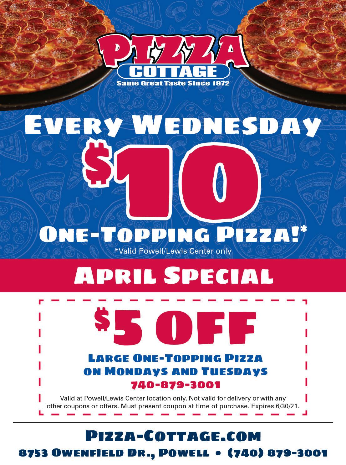 Dine-In • Carry-Out • Delivery Family Value Large 1 item pizza with 12inch garlic bread (choice of sauce) and Large Garden Salad $25.00 One Large 1 Item Pizza $13.00 Not valid with any other offers. Expires 4/30/21. Not valid with any other offers. Expires 4/30/21.