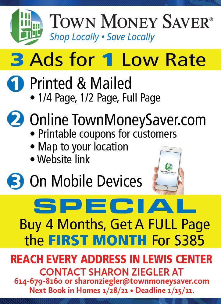 $5 OFF Any Purchase of $35 or More 1 per coupon per customer. Must present at time of purchase. Expires 1/31/21. 100 Family Recipes of Artisan Gelato! 18 Flavors on Rotation! 1182 E. Powell Rd. Gelato Made Fresh Daily In Small Batches Gelatolicious Hours: Monday - Sunday 8:00 am - 8:00 pm Outdoor Seating Authentic Italian Crafted Gelato Non-Dairy and Gluten Free Available Authentic Italian Coffee: Espresso, Macchiato, Latte, Cappuccino, Affogato (espresso+gelato) $2.00 OFF Good Monday-Friday Not valid with any other offer. Expires 1/31/21. Good Monday-Friday Not valid with any other offer. Expires 1/31/21. Any Purchase of $10 or More Buy 1 Get 1 FREE Caffe Affogató LEWIS CENTER 614-987-6014 Located next to 10% OFF ENTIRE PURCHASE (Excluding Pet Food) Expires 1/7/21. Captivating Canines Captivating Canines 12 East Main St, Westerville OH 882-8863 captivating-canines.com DELIVERY AVAILABLE www.facebook.com/CaptivatingCanines/ Westerville’s Pet CBD Specialist Harness Fitting & Trial Walks Available Distinctive Gifts for Christmas Ornaments & Pet Memorial Dog & Cat Food, Treats, Toys & Much More Featuring Pet Releaf Brand Products and others