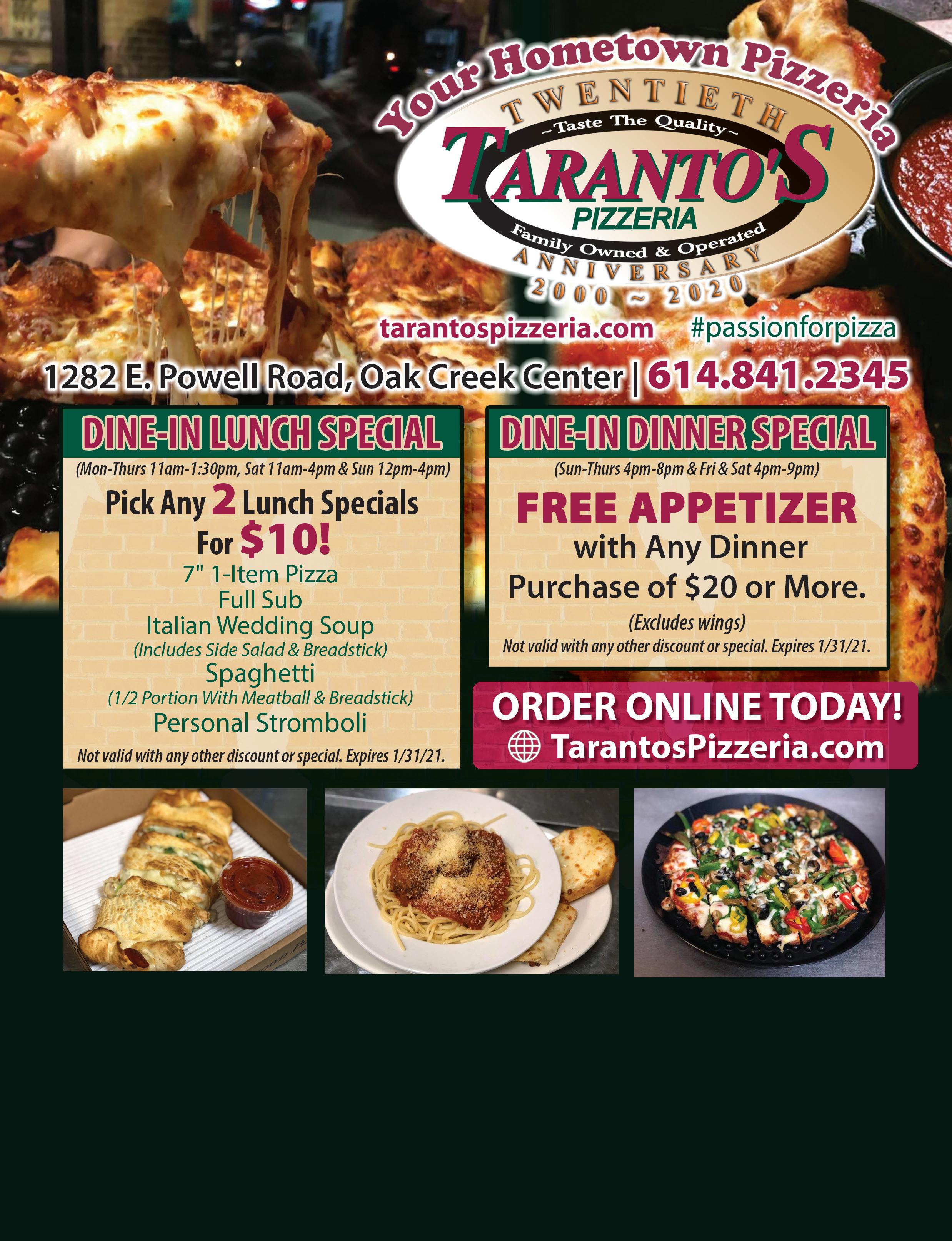 ASK YOUR SERVER! Early Bird Breakfast Special (Mon-Fri 6:30am to 8:30am) $4.99 1182 E. Powell Rd. • LEWIS CENTER • 614-987-6014 Dine-in/Online Ordering/Curbside pickup Now Available! www.pancakehousecolumbus.com NEW EXTENDED HOURS 8PM! To Serve You Lewis Center/Polaris/Powell 6:30am - 8:00pm Monday - Sunday New Daily Specials: Monday: BOGO 1/2 OFF Gelato Pints Tuesday: $1 OFF Specialty Italian Coffee Wednesday: $5 OFF Family Meal Deals Thursday: BOGO 1/2 OFF Specialty Pancakes Friday: FREE KID’S MEAL with Purchase of an Adult Meal $2.00 OFF Good Monday-Friday $5.00 OFF Good Monday-Friday Not valid with any other offer. Expires 1/31/21. Not valid with any other offer. Expires 1/31/21. Any Purchase of $10 or More Any Purchase of $25 or More Family Owned & Operated Since 2009 Voted Best Locally Owned Breakfast Joint In Columbus By NBC Channel 4 Far More than a Great Breakfast! Specials not valid with other offers/coupons LEWIS CENTER 1035 Polaris Parkway 614-384-0555 WESTERVILLE 7397 State Route 3 614-823-4040 COLUMBUS 1894 Hard Rd 614-766-0300 ORDER ONLINE DOMINOS.COM Mention This Ad & Receive 20% OFF Any Service (New Clients Only)