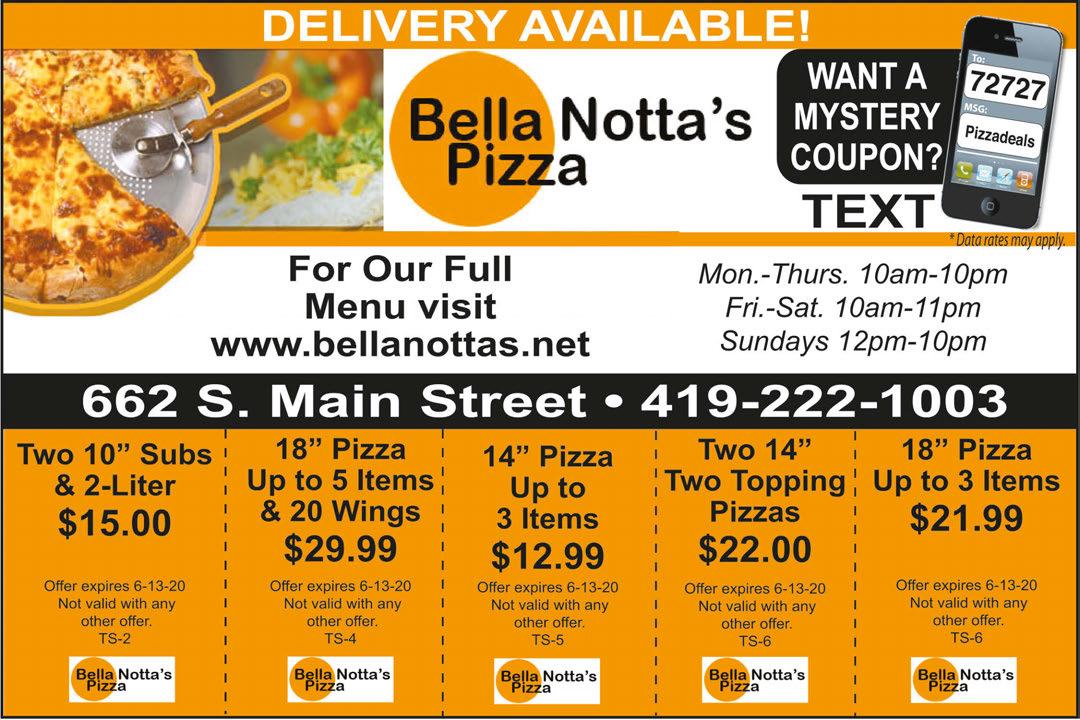1/20¢ cash redemption value. The Pizza Hut name, logos and related marks are trademarks of Pizza Hut, LLC. © 2020 Pizza Hut, LLC EXPIRES 6/28/20 One coupon per person per party at participating Pizza Hut® restaurants. Not valid with any other offer or special promotional product. Additional charge for Original Pan®, Stuffed Crust® Pizza, extra toppings, and extra cheese. Crust availability may vary. Limit one free crust flavor per pizza. Product availability, prices, participation, delivery areas and charges, and minimum purchase requirements for delivery may vary. The delivery charge is not a driver tip. 1/20¢ cash redemption value. The Pizza Hut name, logos and related marks are trademarks of Pizza Hut, LLC. © 2020 Pizza Hut, LLC EXPIRES 6/28/20 Additional charge for extra toppings and extra cheese. Crust availability may vary. Limit one free crust flavor per pizza. Product availability, prices, participation, delivery areas and charges, and minimum purchase requirements for delivery may vary. The delivery charge is not a driver tip. Availability of WingStreet® products and flavors varies by Pizza Hut® location. Additional charge for traditional wings. 1/20¢ cash redemption value. The Pizza Hut name, logos and related marks are trademarks of Pizza Hut, LLC. © 2020 Pizza Hut, LLC $1299 $1499 $2499 $1299 $1999 ANY PIZZA LUNCH FOR TWO PIZZA + DESSERT PIZZA & WINGS SPECIALTY PIZZA FAMILY MEAL NW 0Q RN JF AS 30% OFF CONTACTLESS AVAILABLE 133 E. 5TH ST. 419-695-8085