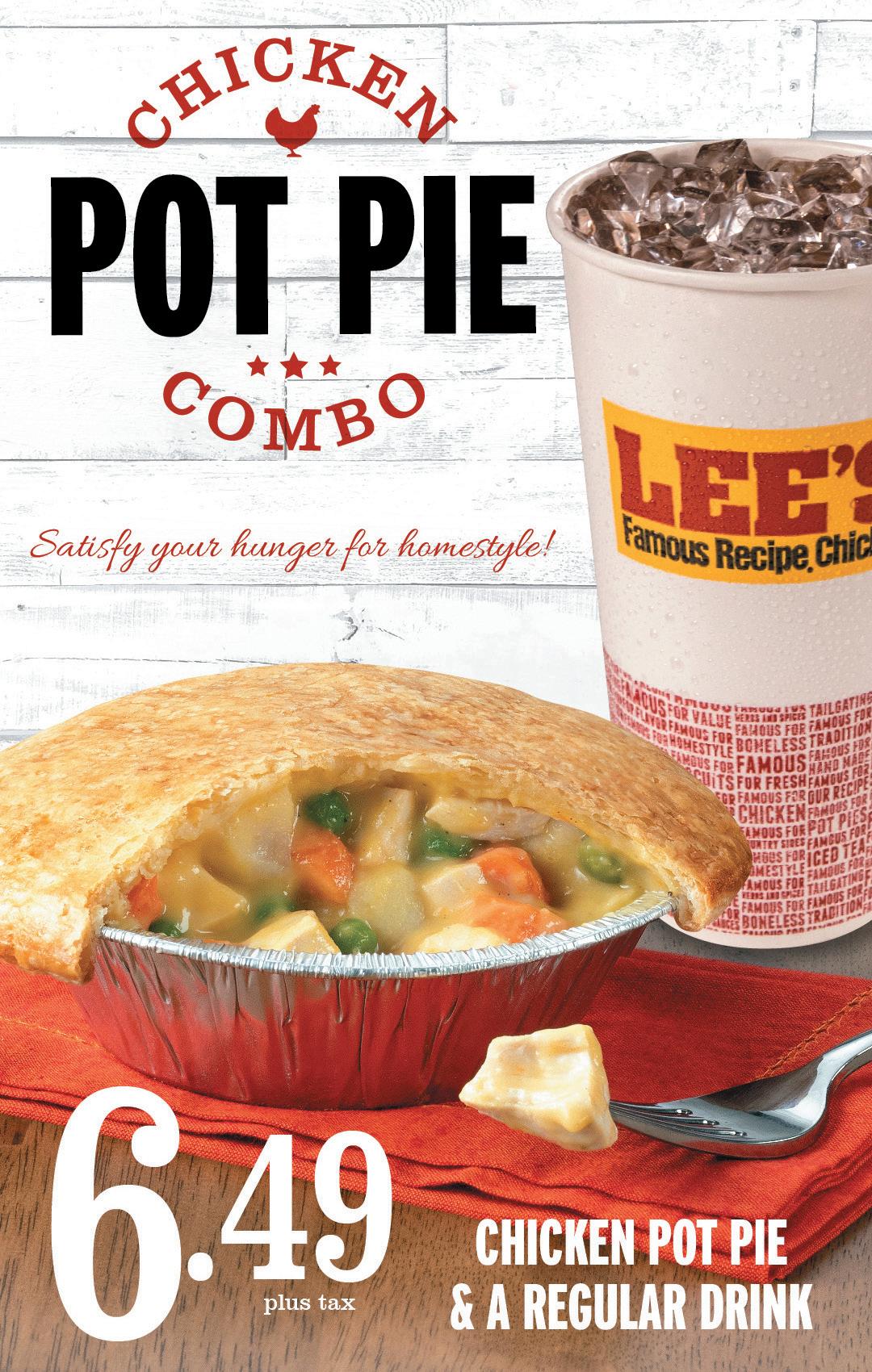 10-PIECE MEAL Includes 10 pieces of Mixed Classic Chicken, 2 large sides and 5 biscuits $24.99 3-WING SNACK Includes 3 chicken wings and a biscuit $3.99 20-PIECE BOX Includes 20 pieces of Mixed Classic Chicken $27.99 LARGE ORDER OF LIVERS OR GIZZARDS Includes 1 pint of livers or gizzards $3.99 8-PIECE BOX Includes 8 pieces of Mixed Classic Chicken $12.99 COUNTRY FRIED STEAK MEAL Includes 2 country fried steaks, coleslaw, mashed potatoes & gravy and a biscuit $5.99 LARGE SIDE $3.99 Family Meal or Box SPICY JUMBO DIPPERS CUP-TO-GO $4.59 Includes all-white meat Spicy Jumbo Dippers and a dipping sauce BREAST MEAL Includes chicken breast, 2 individual sides and a biscuit $4.99 Valid only at participating Lee’s. Buy up to 6 at this price with this coupon. Not valid with any other promotional offer or coupon. Expires 6/23/19. Valid only at participating Lee’s. Buy up to 6 at this price with this coupon. Not valid with any other promotional offer or coupon. Expires 6/23/19. Valid only at participating Lee’s. Buy up to 6 at this price with this coupon. Not valid with any other promotional offer or coupon. Expires 6/23/19. Valid only at participating Lee’s. Buy up to 6 at this price with this coupon. Not valid with any other promotional offer or coupon. Expires 6/23/19. Valid only at participating Lee’s. Buy up to 6 at this price with this coupon. Not valid with any other promotional offer or coupon. Expires 6/23/19. Valid only at participating Lee’s. Buy up to 6 at this price with this coupon. Not valid with any other promotional offer or coupon. Expires 6/23/19. Valid only at participating Lee’s. Buy up to 6 at this price with this coupon. Not valid with any other promotional offer or coupon. Expires 6/23/19. Valid only at participating Lee’s. Buy up to 6 at this price with this coupon. Not valid with any other promotional offer or coupon. Expires 6/23/19. Valid only at participating Lee’s. Buy up to 6 at this price with this coupon. Not valid with any other promotional offer or coupon. Expires 6/23/19. Expires 1/31/21. Expires 1/31/21. Expires 1/31/21. Expires 1/31/21. Expires 1/31/21. Expires 1/31/21. Expires 1/31/21. Expires 1/31/21. Expires 1/31/21. Order Lee’s Famous Catering for your holiday parties! We cater any size group. Ask manager for details. Make the holidays hassle-free!